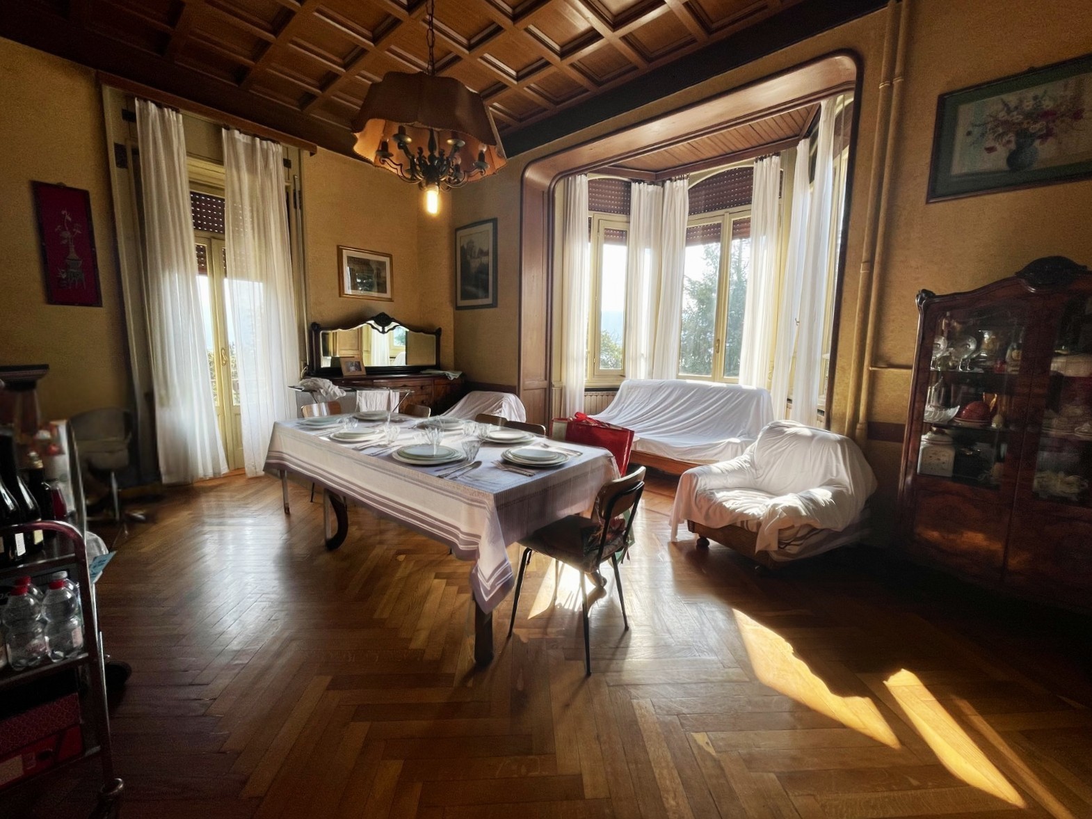 Die Villa erstreckt sich über vier Ebenen und bietet großzügige, vielseitige Räume: aktuell in neun unabhängige Wohneinheiten aufgeteilt, ergänzt durch großzügige Salons, eine professionelle Küche und eine separate Dependance von ca. 100 m². Die Renovierungen in den 1990er Jahren führten zu einer vorübergehenden Nutzung als Hotel und Restaurant, doch die Seele der Villa blieb stets bewahrt – heute ist sie wieder eine exklusive Privatresidenz.