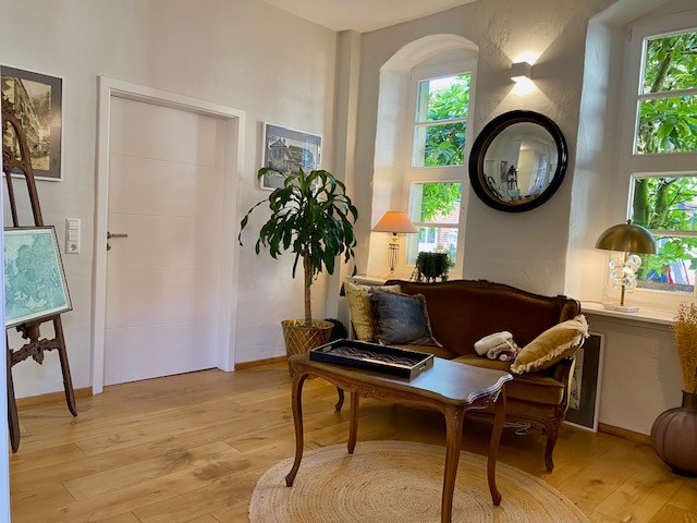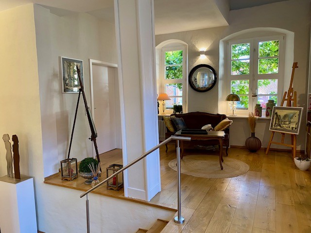 Die Liegenschaft verfügt über zwei Zugänge: Einerseits ist das Haus von der Fußgängerzone aus über einen Haupteingang zu betreten, andererseits ist der zweite Zugang von der ….Seite aus möglich. Das historische Herrenhaus bietet Ihnen insgesamt 12 Zimmer und 4 Badezimmer.