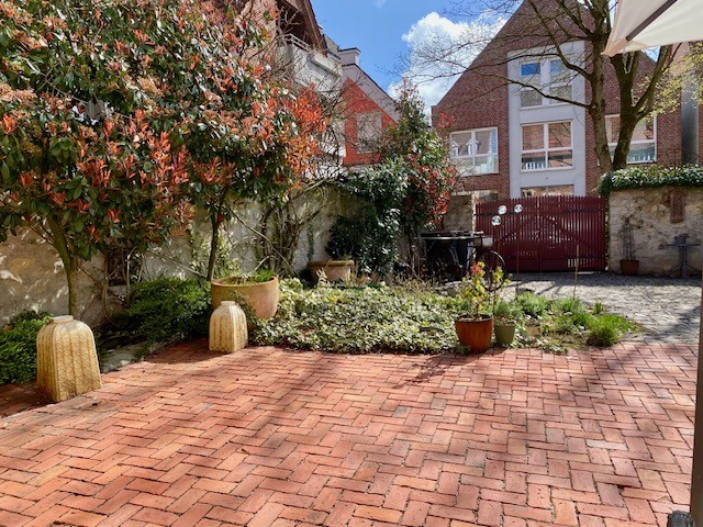 Der Hofgarten, der einen visuell reizvollen Blick auf die Kirche ermöglicht, fungiert als ein Refugium für Ruhe, Gelassenheit und Inspiration.