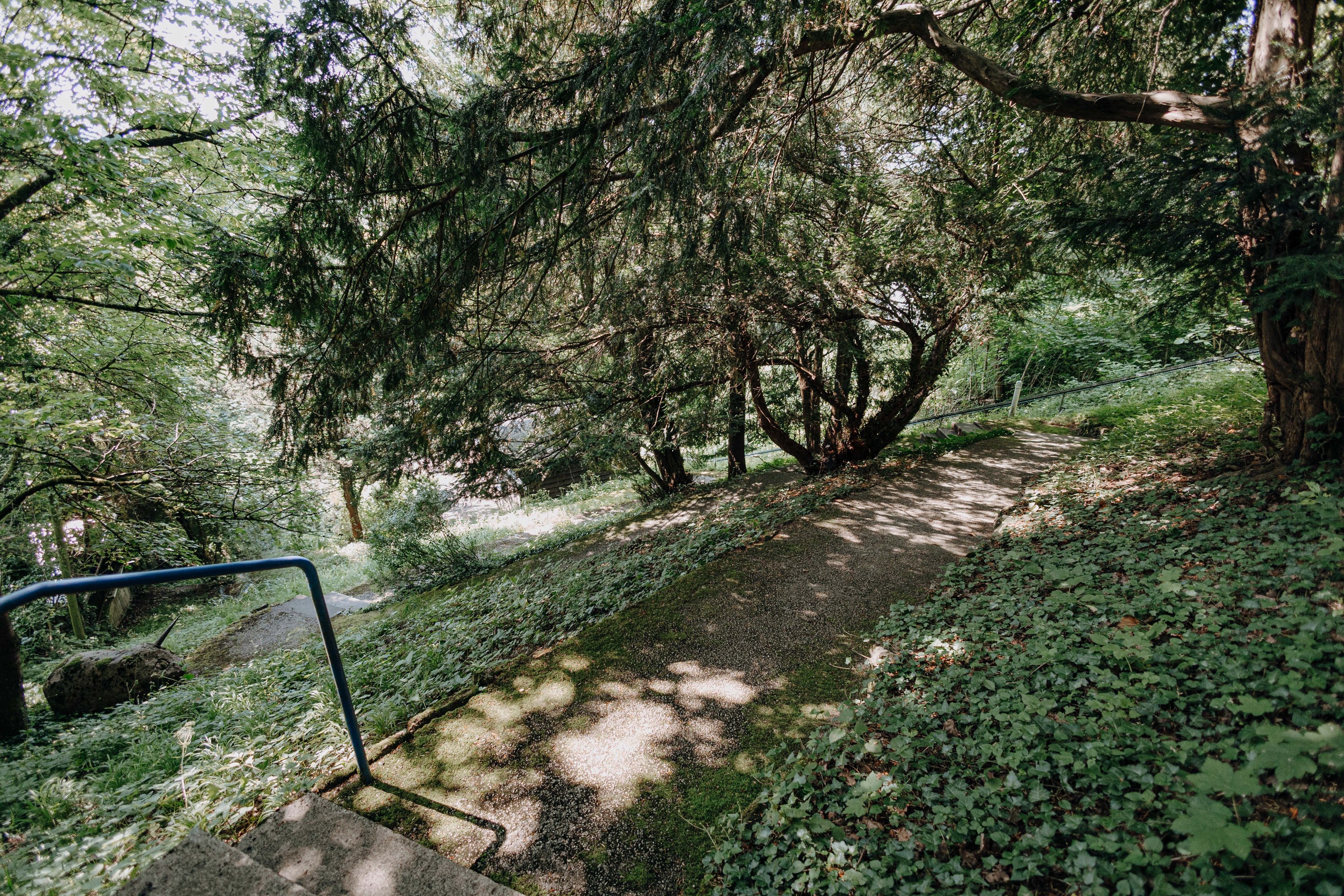 Die Liegenschaft besticht durch ihre Privatsphäre: Keine direkten Nachbarn und ein dichter Baumbestand schaffen eine ruhige und naturnahe Umgebung, ideal für alle, die exklusive Wohnqualität und Schutzstatus in einem historischen Anwesen schätzen.