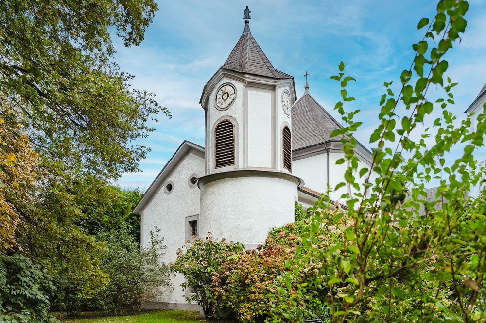 Der Schlossgarten bietet alte Bäume, Rosenbeete und gepflegte Parkanlagen, die zu Spaziergängen einladen. Eine grosszügige Poolanlage verbindet modernen Luxus mit historischer Umgebung.