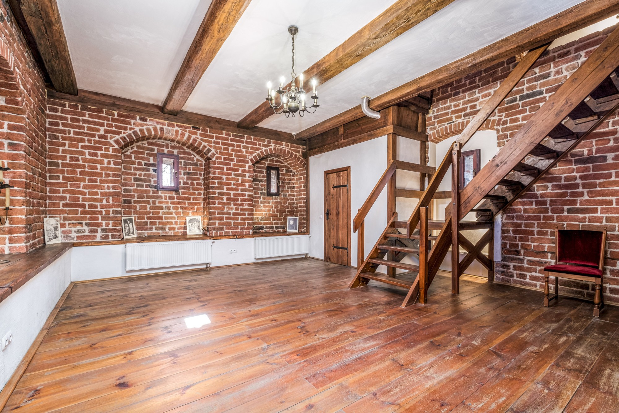 Im Erdgeschoss befinden sich gegenwärtig Geschäftsräume, u.a. eine Galerie für moderne Kunst. Die Grundstücksfläche beträgt 96 m². Die Dicke der Wände variiert von 60 cm im Dachgeschoss bis zu ganzen 1,65 m im Erdgeschoss. Die sehr gute touristische Lage an einem der interessantesten und geschichtsträchtigsten Orte Pommerns machen diese Denkmalimmobilie sicher zusätzlich attraktiv.