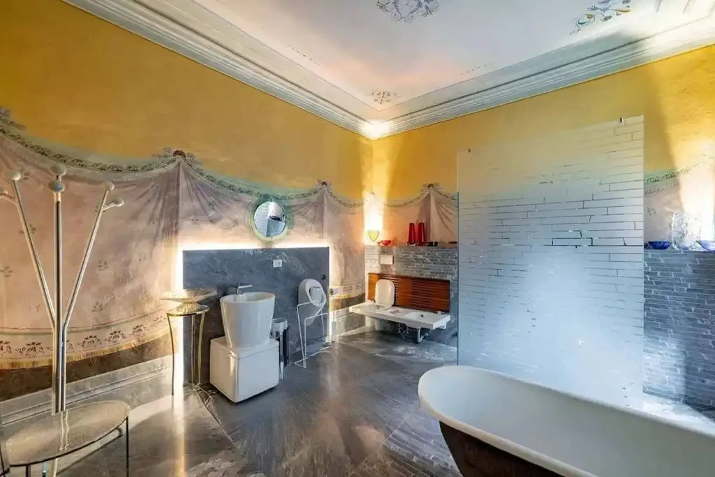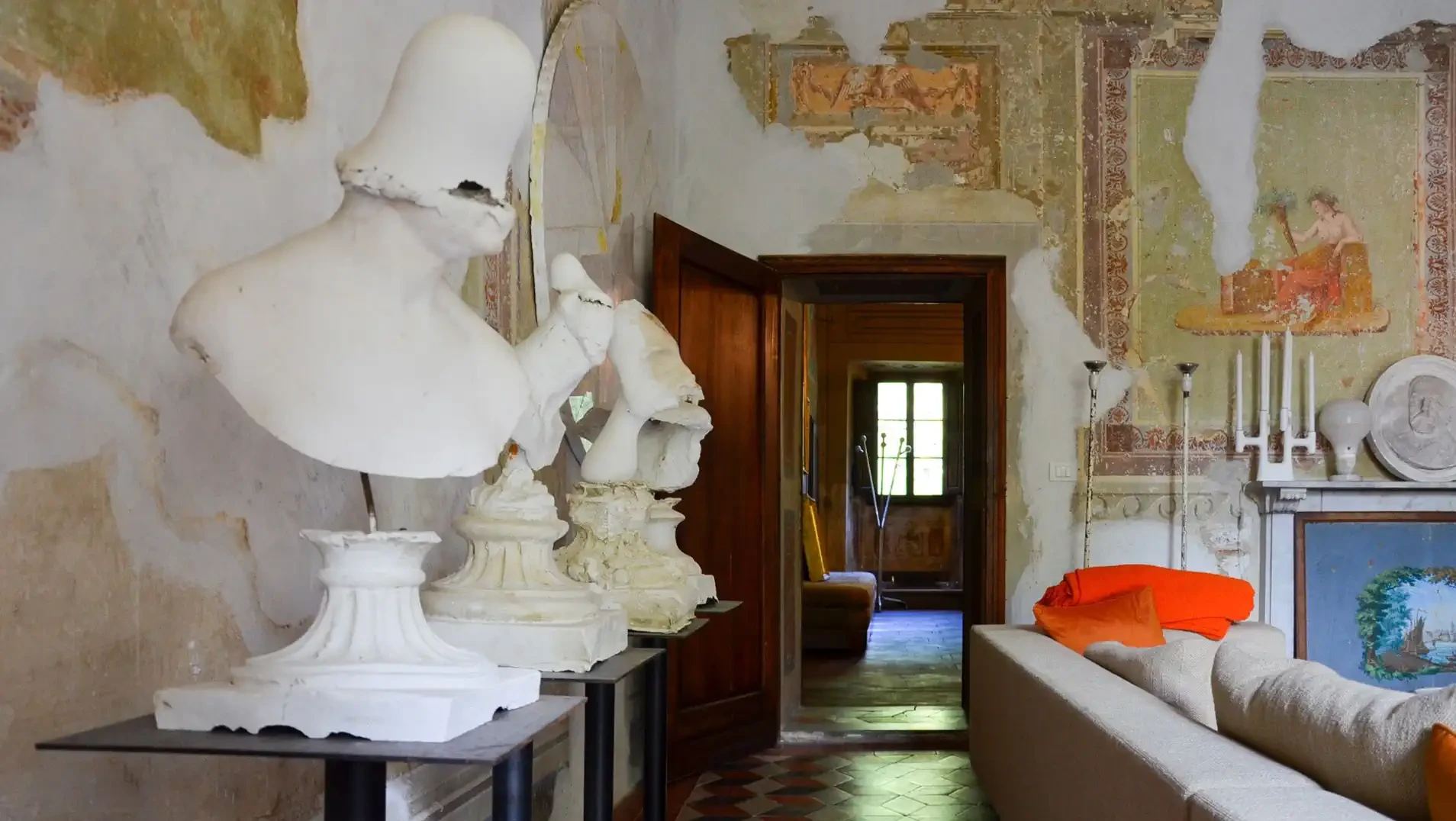 Bei der jüngsten Restaurierung wurden Freskenzyklen freigelegt, die Wohn- und Repräsentationsräume schmücken. Die Wandmalereien zeigen florale und geometrische Motive sowie Trompe-l'œil-Architektur. Ursprünglich existierte ein Zyklus, der die vier Jahreszeiten darstellte; durch bauliche Veränderungen im 19. Jahrhundert ging ein Teil dieser Bildfolge verloren.