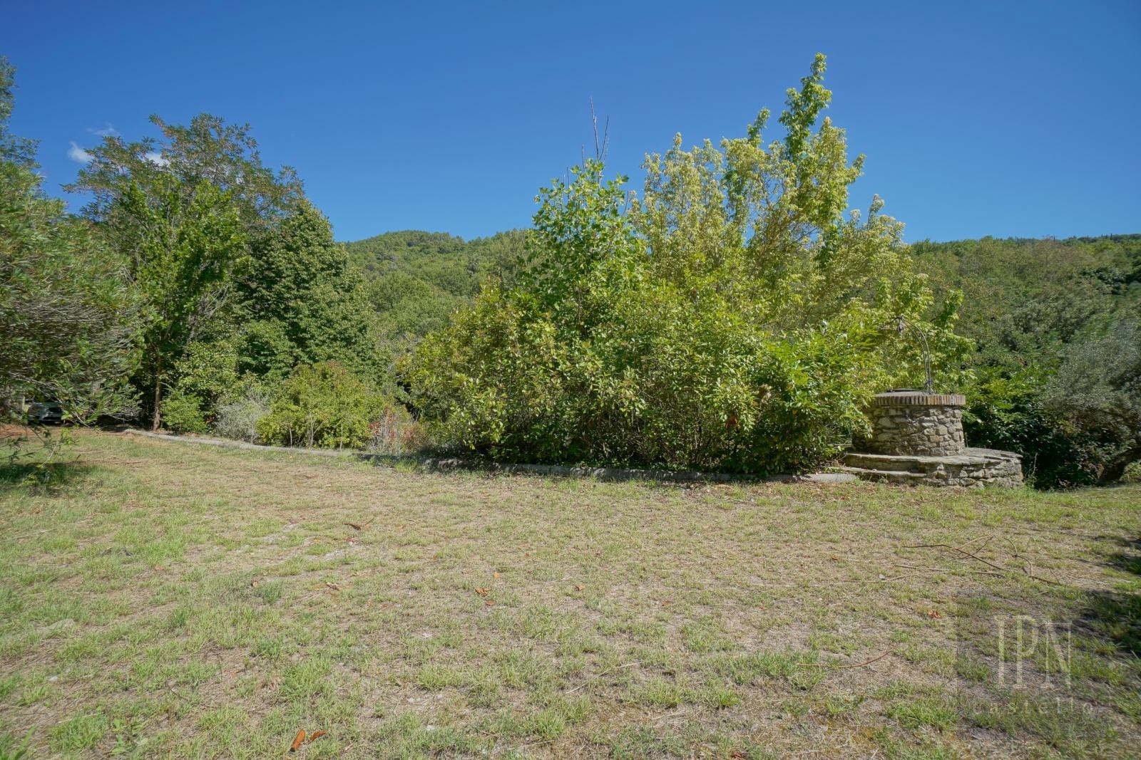 Das Haus ist von rund 8.500 m² eingezäuntem Grundstück umgeben, mit Olivenbäumen und natürlicher Vegetation. Ein neben dem Gebäude verlaufender Bach bildet kleine natürliche Becken, die über Steinstufen zugänglich sind.