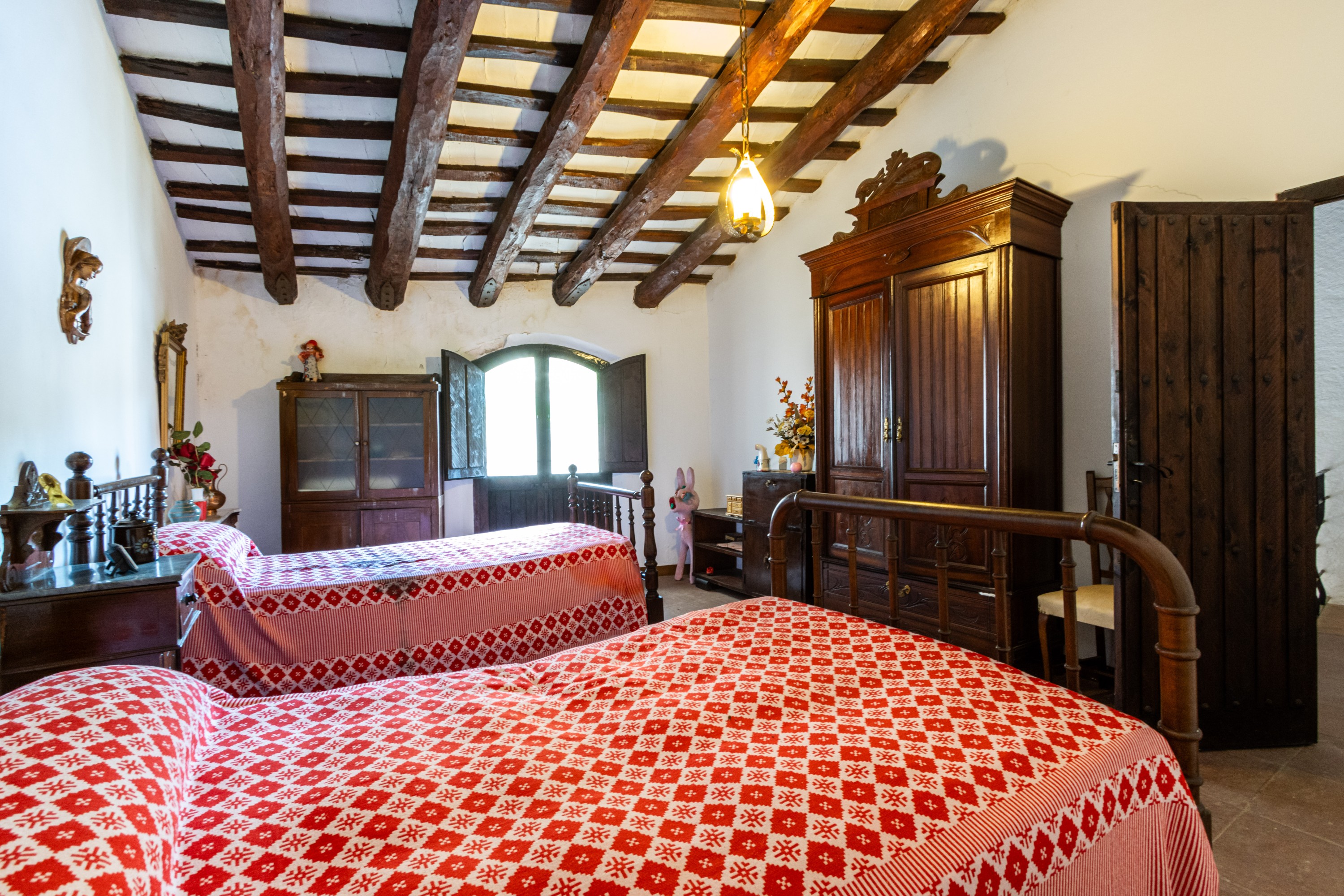 La escalera de roble macizo, cuidadosamente conservada, nos conduce a la zona de noche, donde encontramos cuatro habitaciones dobles, luminosas y con agradables vistas al entorno natural.