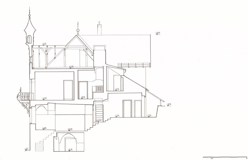 • Obergeschoss: 7 Zimmer, Badezimmer, Wäsche- und Technikraum, Abstellraum, WC, Zugang zum Dachboden.