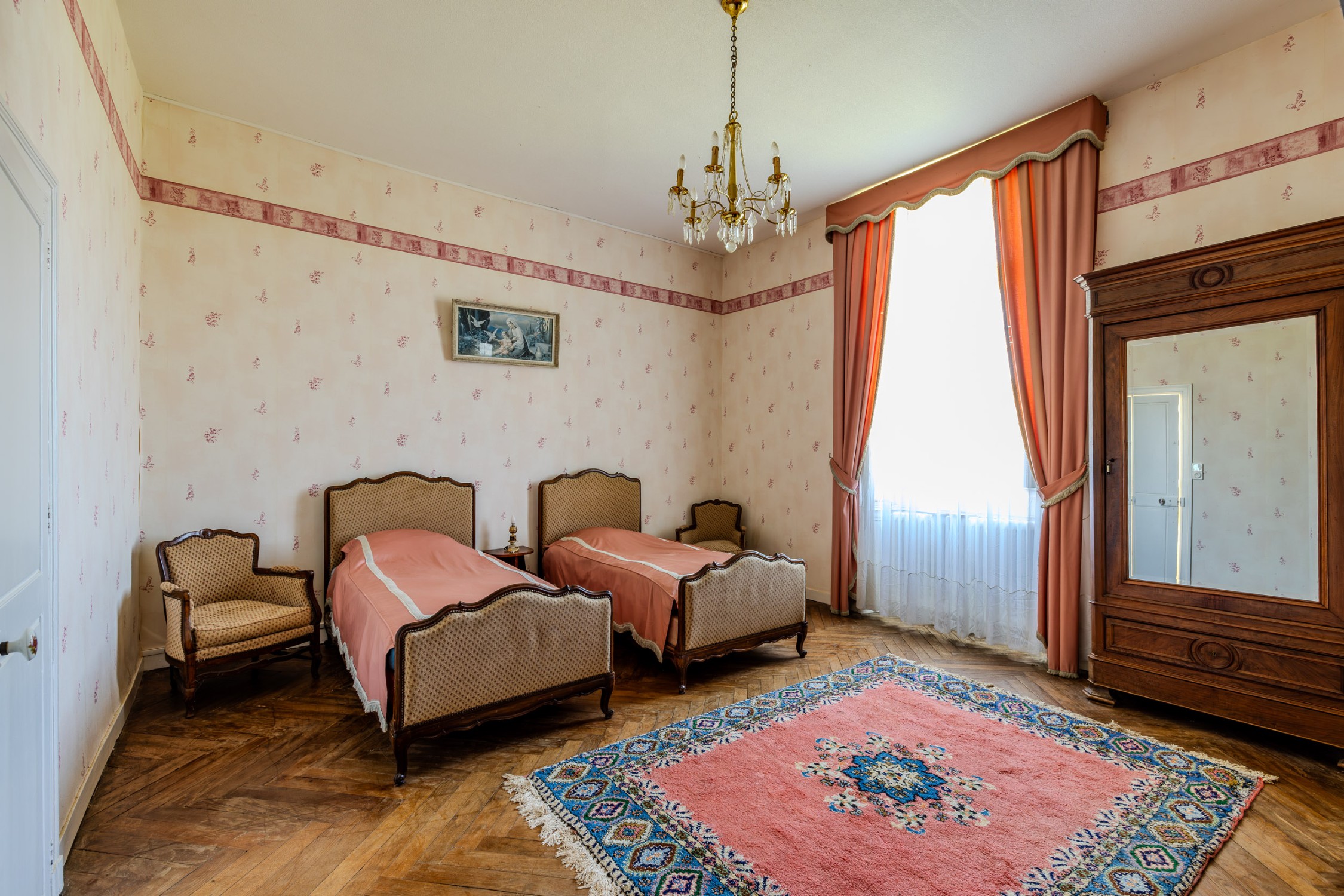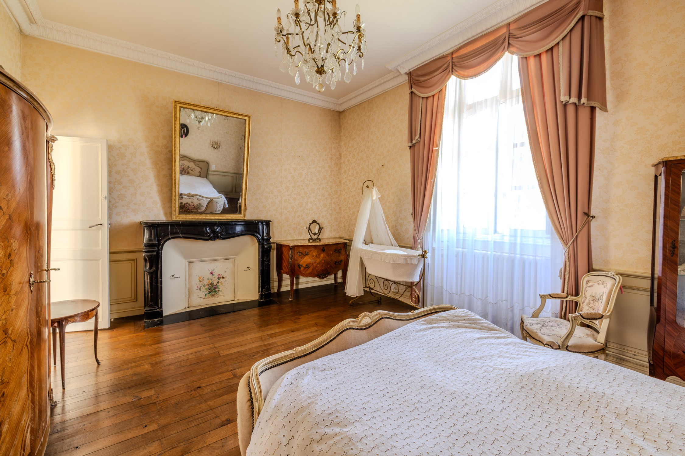 Die Residenz öffnet sich nach Südosten und Nordwesten und bietet weite Ausblicke über den parkähnlichen Garten. Auf rund 270 m² Wohnfläche entfalten sich die Räume enfiladeartig, begleitet von original erhaltenen Louis-XV-Kaminen aus schwarzem Marmor und einem Treppenhaus aus massivem Granit. Das Anwesen ist ein seltenes Zeugnis für den feinen Geschmack und die Lebenskunst der Zeit.