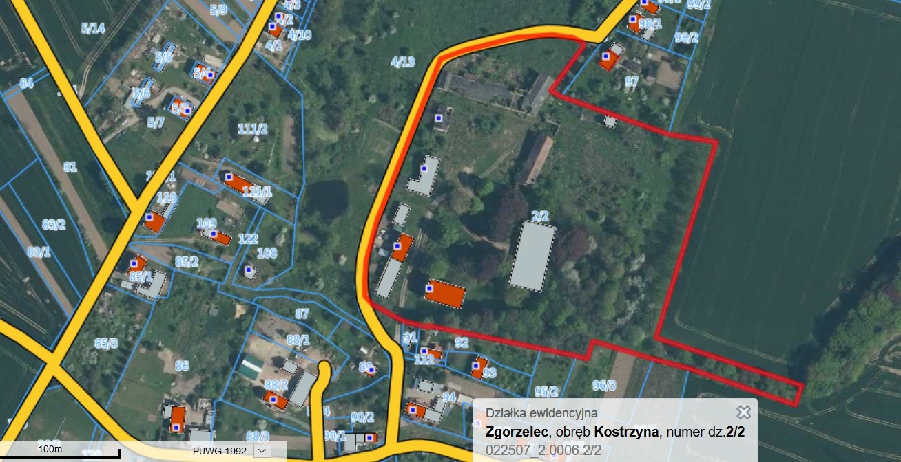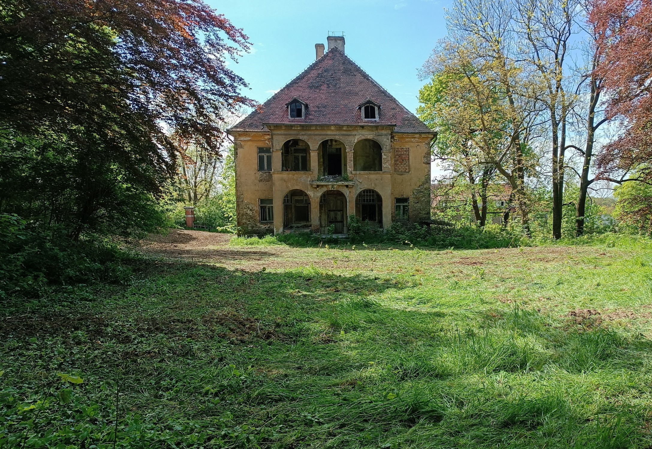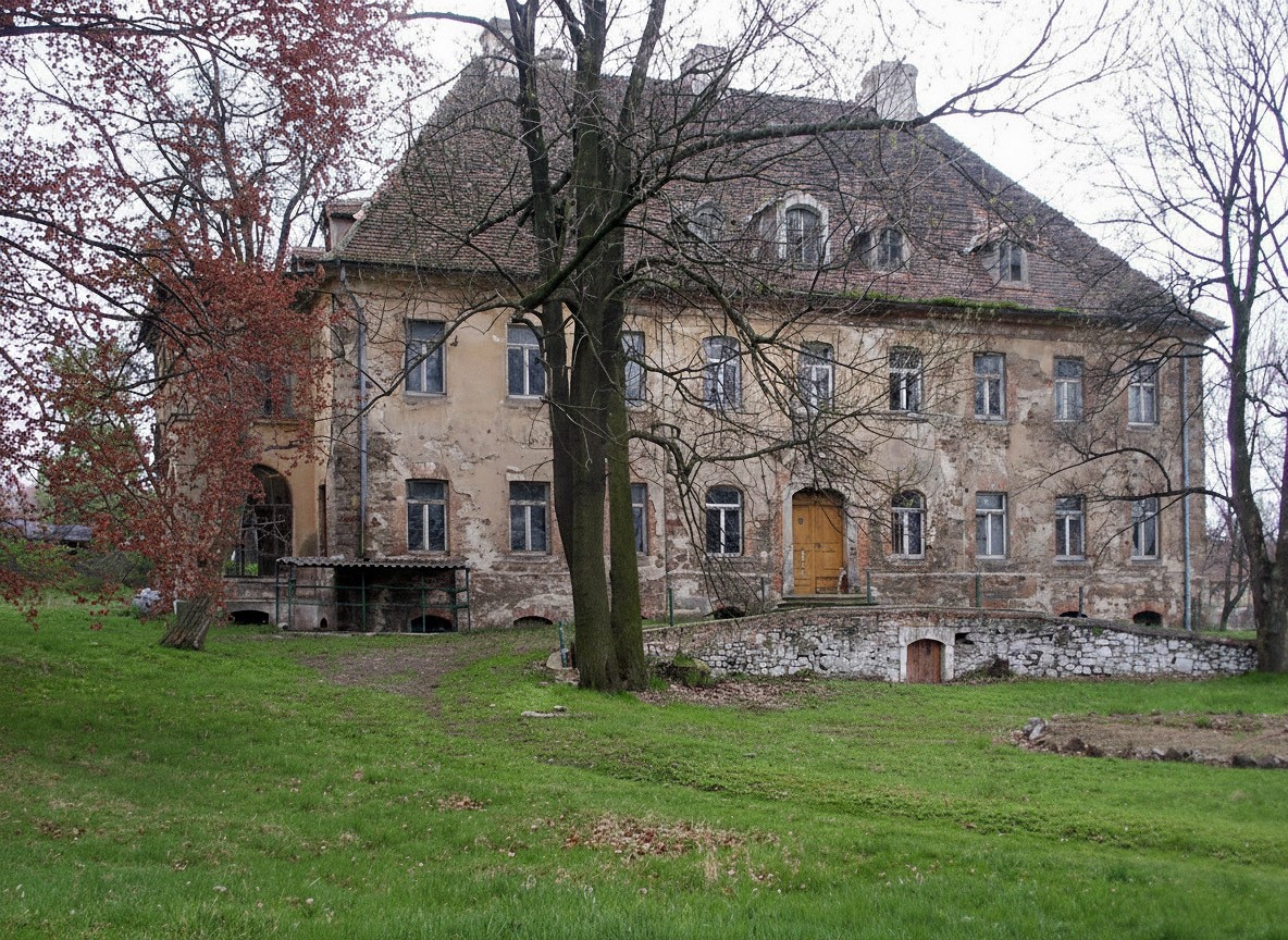 Ein historisches Ensemble in Kostrzyna, gelegen in der polnischen Oberlausitz nahe der deutschen Grenze. Das ehemalige Rittergut vereint ein spätbarockes Herrenhaus mit großflächigen Wirtschaftsgebäuden und einer Parkanlage von 4,6 Hektar. Eine rund 150 Jahre alte Lindenallee führt zum angrenzenden Wald; stattliche Trauerbuchen und eine markante Roteiche prägen den Baumbestand der Anlage.