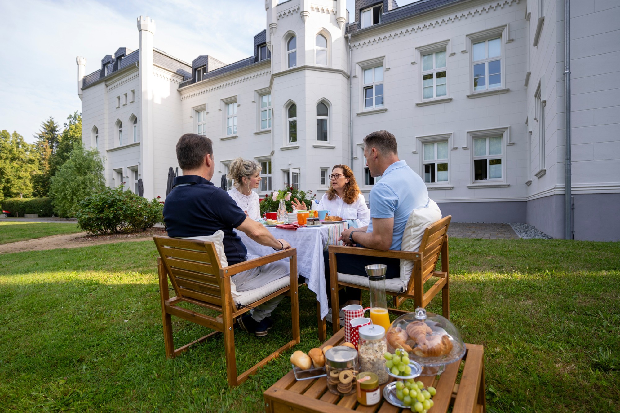 Die Anlage umfasst 26 Wohneinheiten, von Studios bis Apartments zwischen 23 m² und 105 m², jeweils mit modernen Küchen und Bädern ausgestattet. Bei der Renovierung 2017 wurde der historische Charakter des hellen Märchenschlosses mit zeitgemässem Wohnkomfort kombiniert.