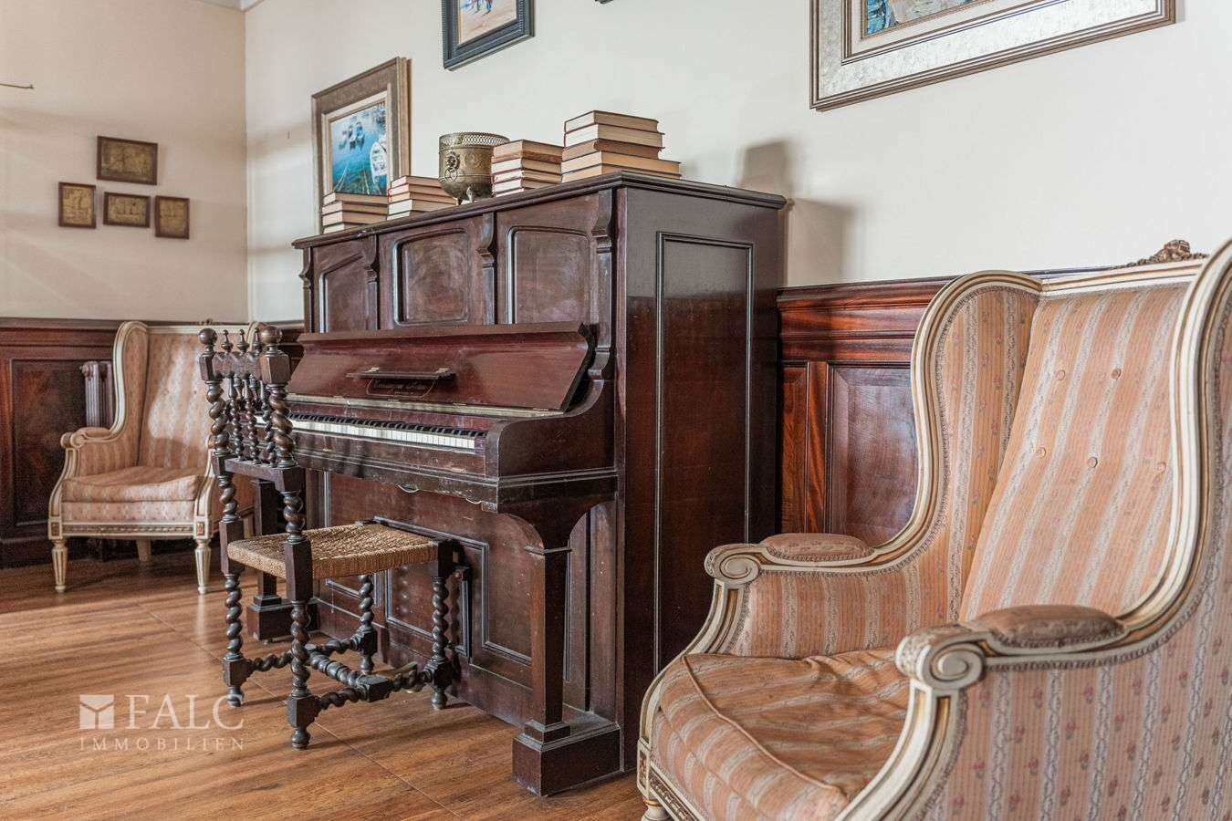 Im ersten Stock gibt es ein grosses Wohnzimmer mit Cheminée, ein Esszimmer, eine Einbauküche, fünf Zimmer und drei Bäder. Im zweiten und dritten Stock befinden sich fünf weitere Zimmer sowie ein Abstellraum.