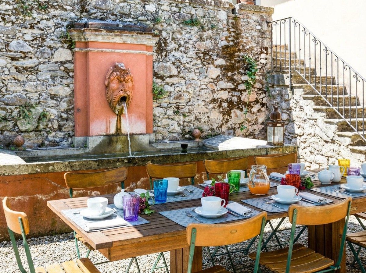 Das Grundstück umfasst einen historischen Park, einen italienischen Garten, einen Swimmingpool mit Sonnenterrasse und Aussendusche, einen Innenhof mit Springbrunnen und Grillplatz, einen kleinen Wald mit Zitronenhain, einen Gemüsegarten sowie Olivenhaine und einen produktiven Weinberg.