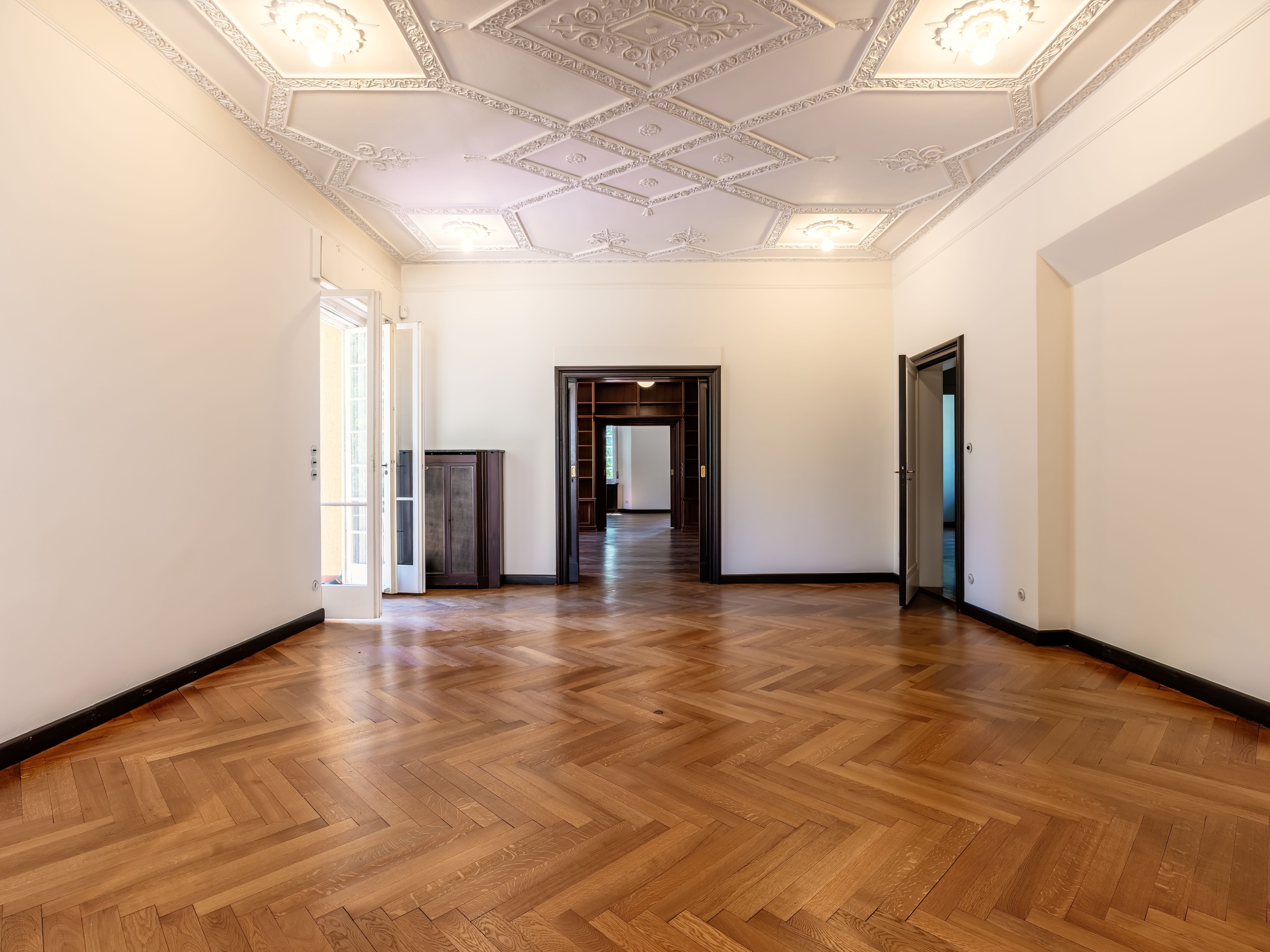 Die hohen Decken, der sorgfältig restaurierte Stuck und die originalen Türbeschläge verleihen den Räumen einen einzigartigen Charakter. Zudem sorgen hochwertige Einbauten und eine erstklassige Sanierung für modernen Komfort.