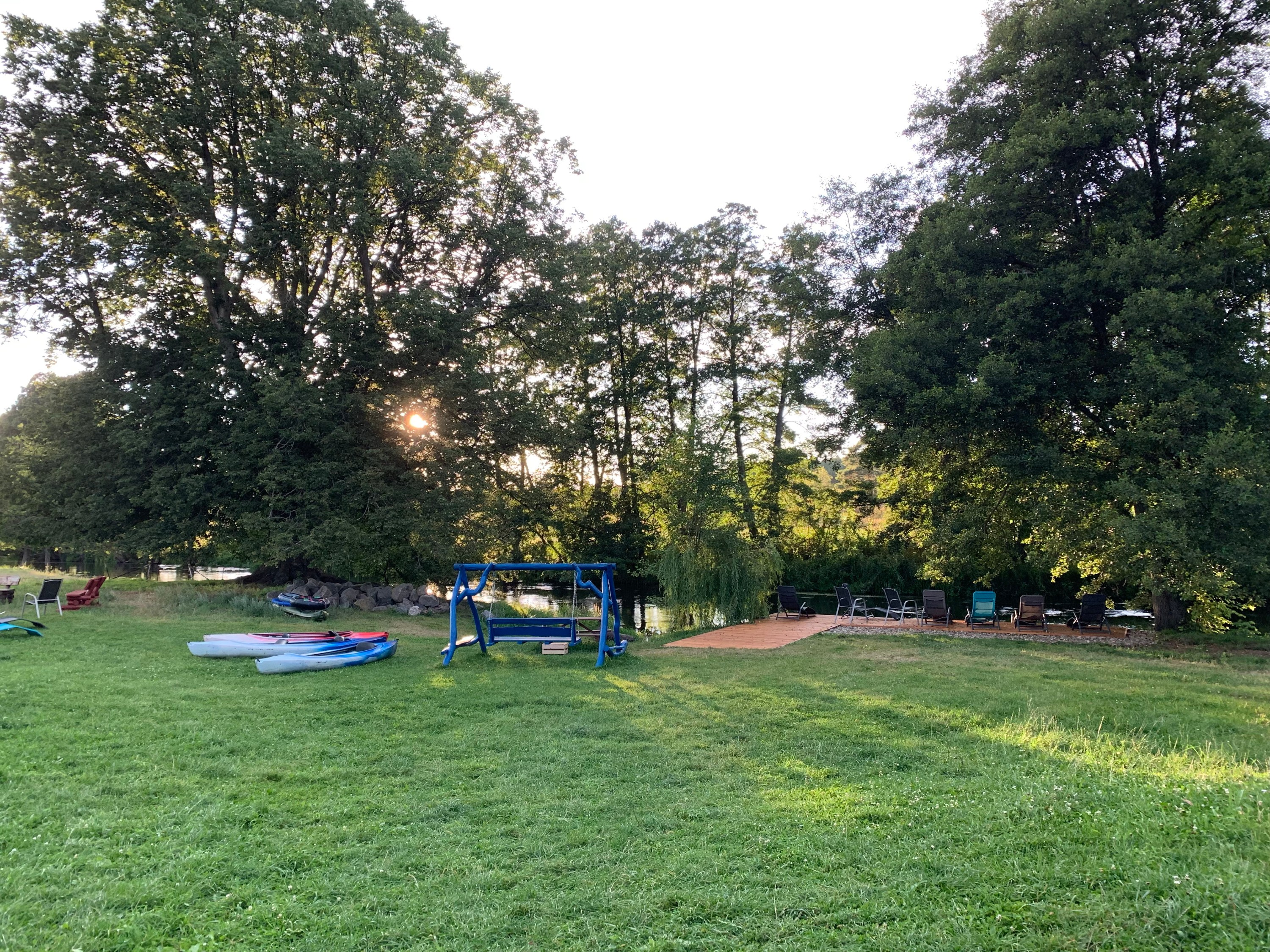- Liegewiesen am Fluss, Angelstelle, Zugang zum Baden