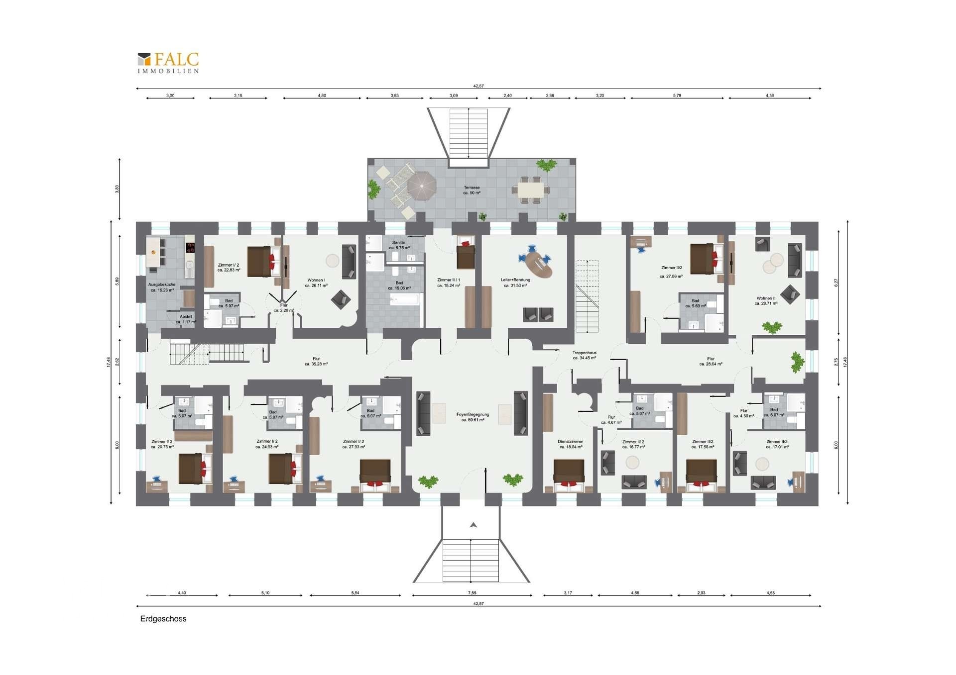 La répartition des pièces permet différentes utilisations : résidence privée, siège d’entreprise, hôtel, lieu d’événements ou établissement éducatif. La grande cuisine au sous-sol est adaptée à un usage gastronomique ou pour desservir plusieurs unités d’habitation.