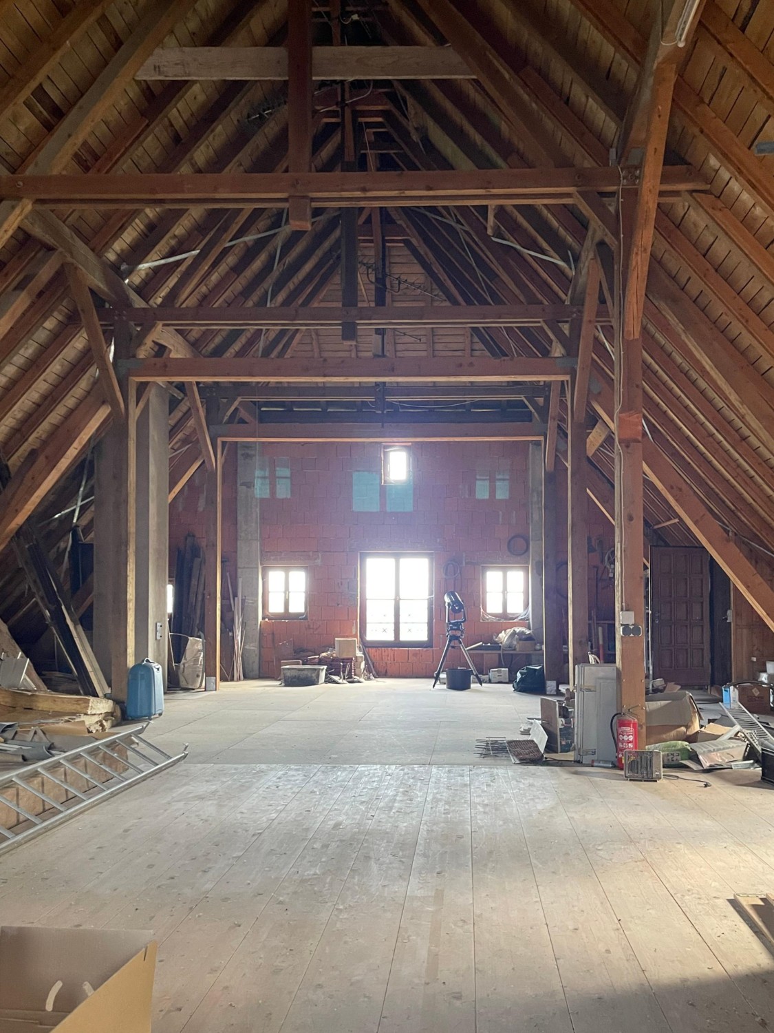 - Grenier aménageable de 200 m², hauteur 7 m