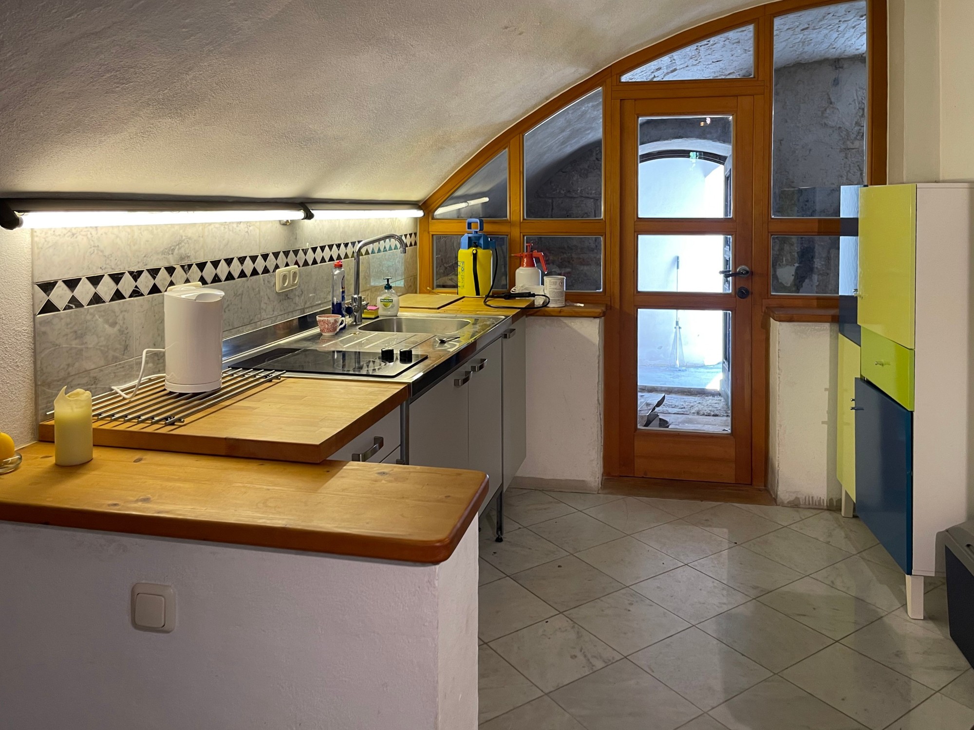 - Salle voûtée de 150 m² avec colonnes en marbre, chauffage au sol