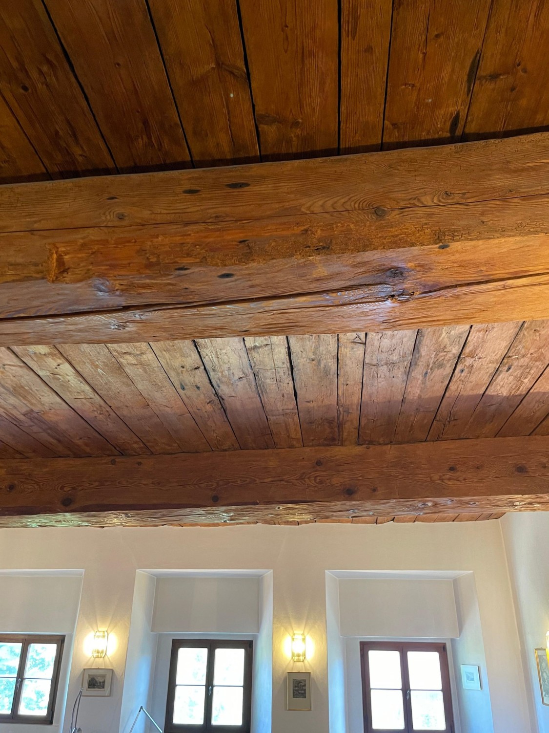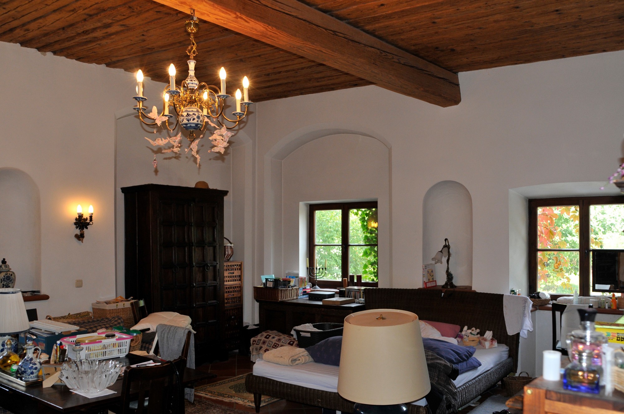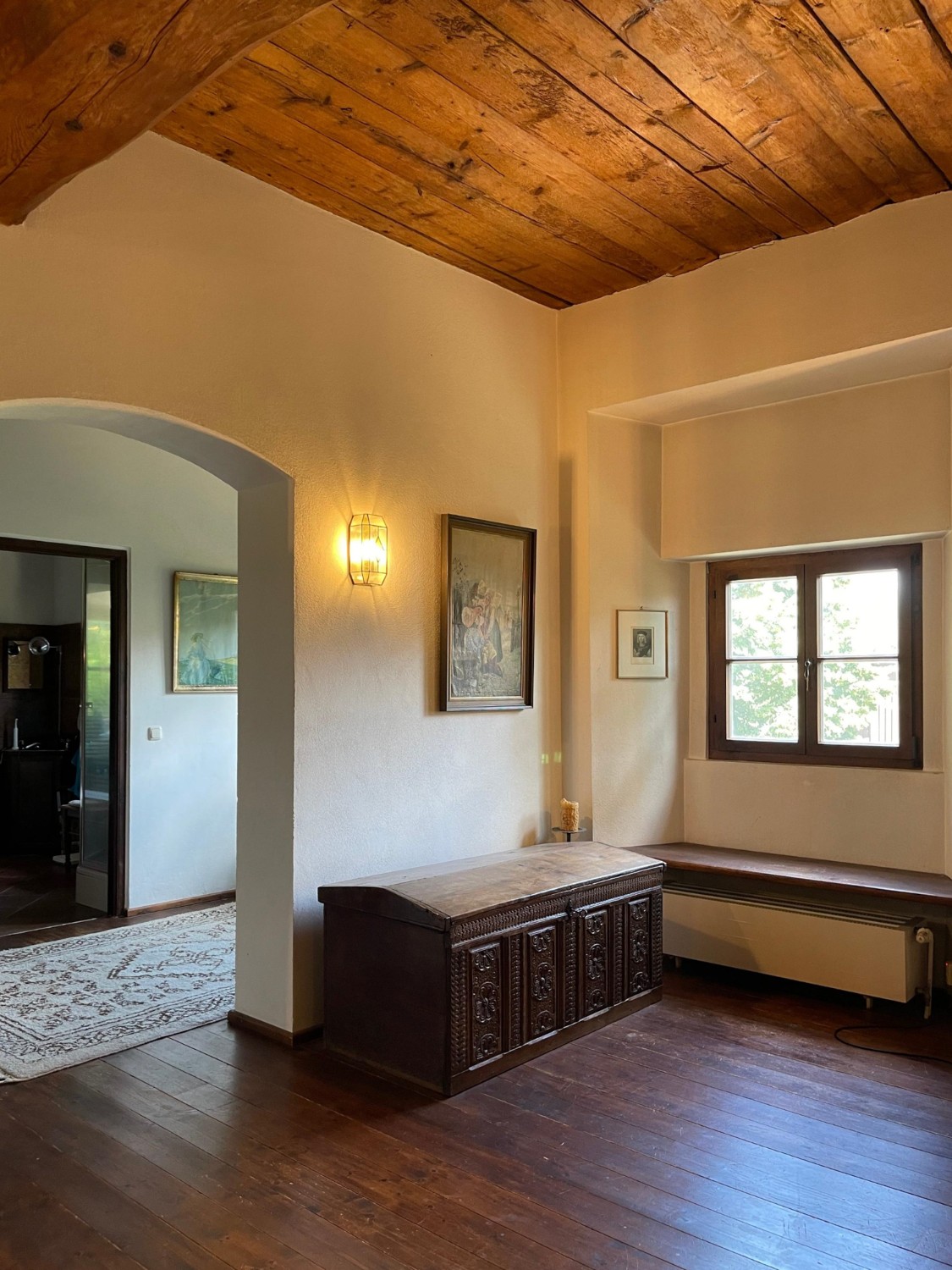 Le château, avec des murs jusqu’à 1 m d’épaisseur et de solides voûtes et plafonds en bois, a été entièrement rénové dans les années 1990. Restauré selon les plans historiques, partiellement reconstruit et renforcé structurellement, il offre aujourd’hui un confort moderne haut de gamme : chauffage central et au sol, salles de bains, électricité, sols, plâtres, toiture, escaliers et garage neufs.