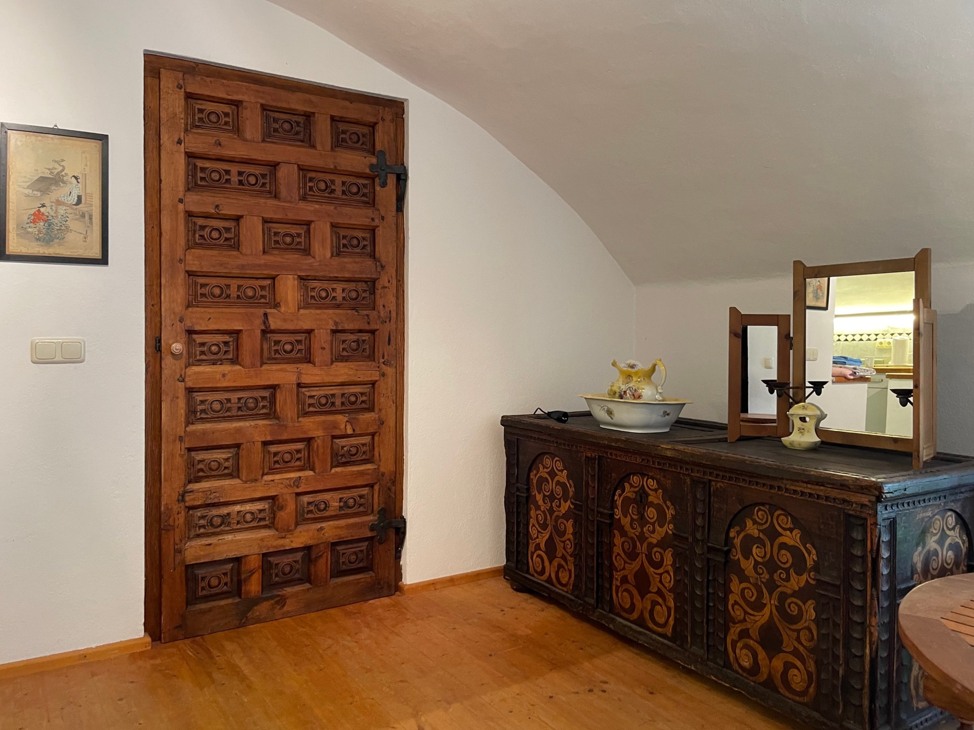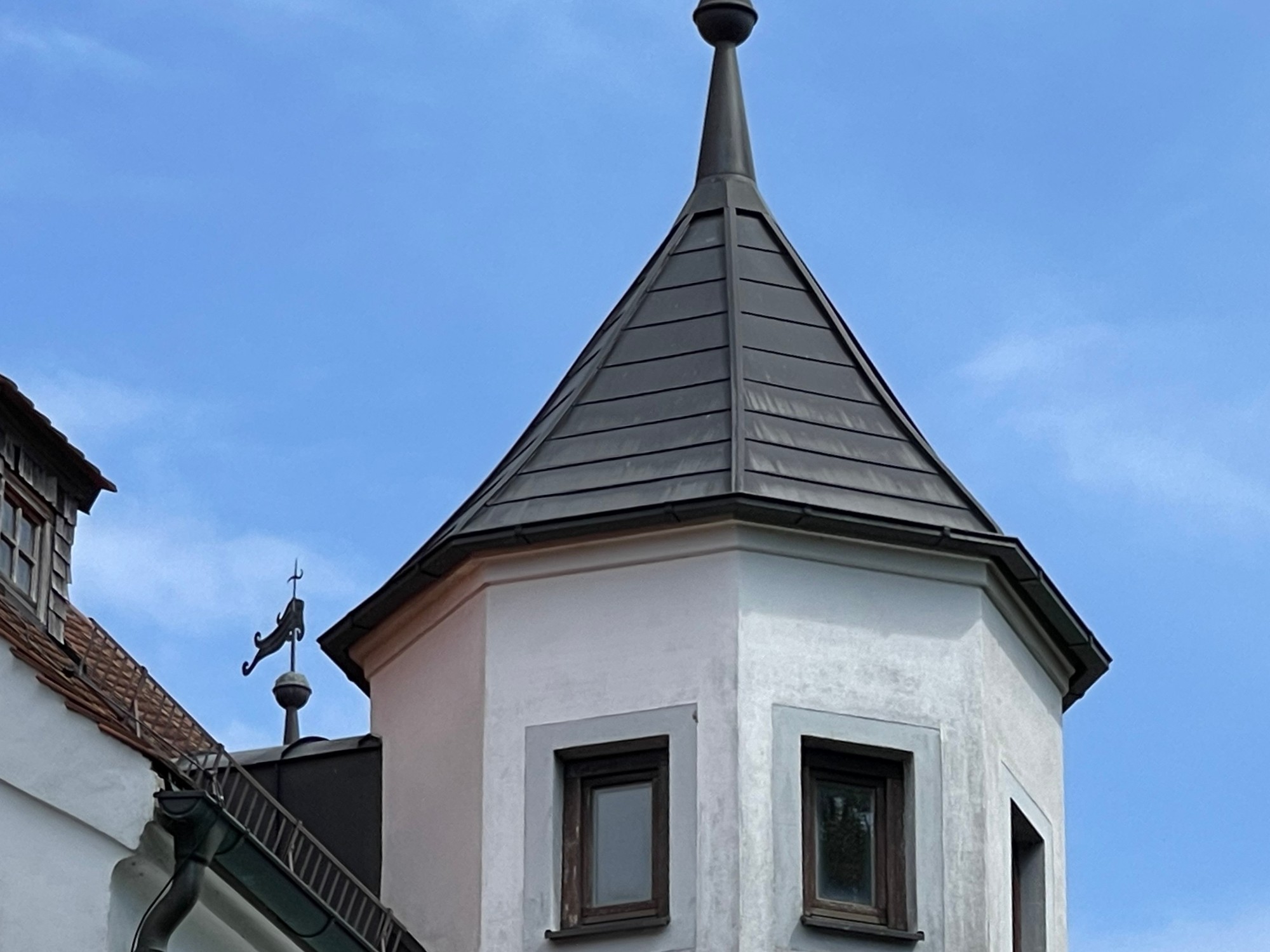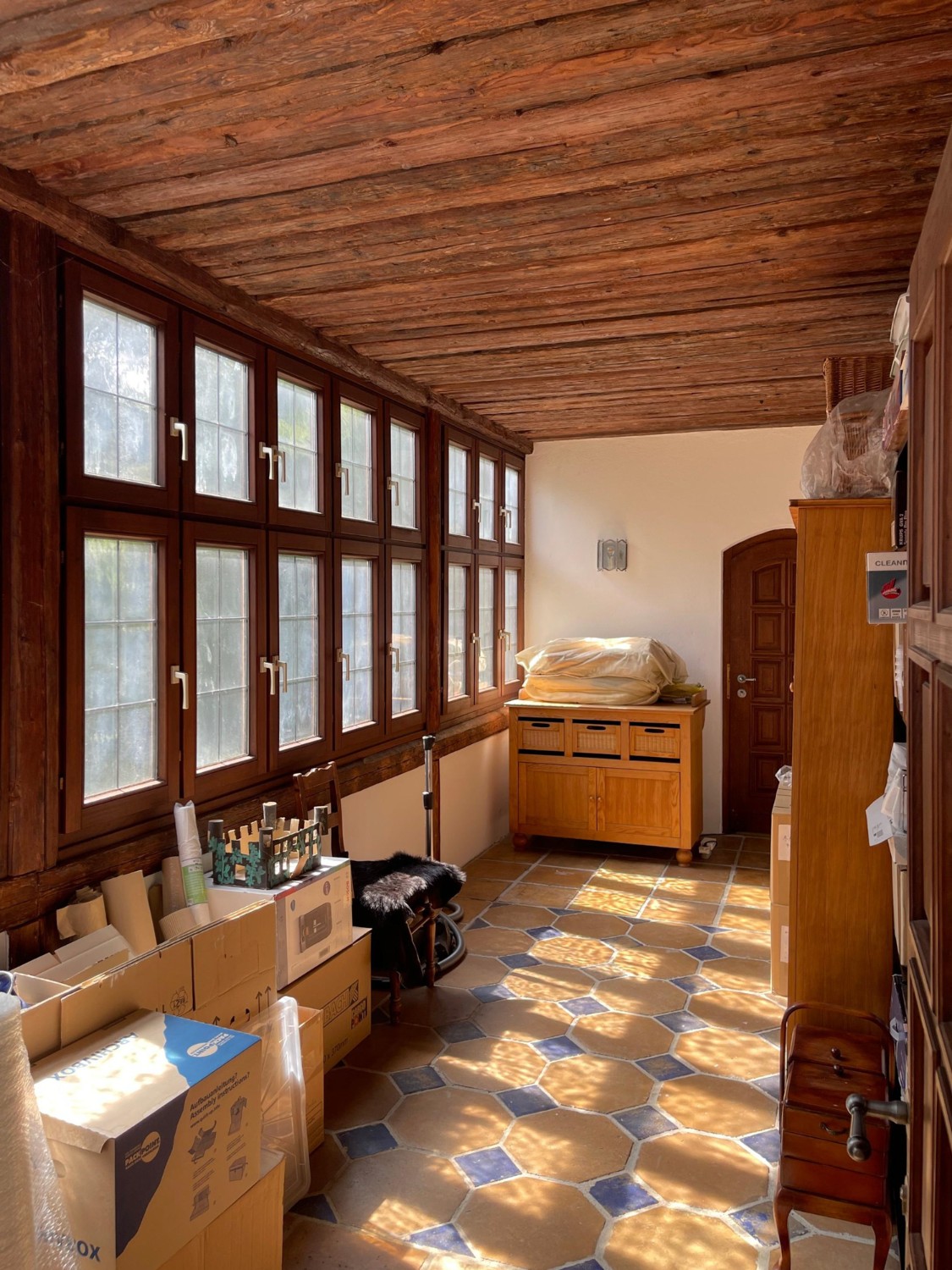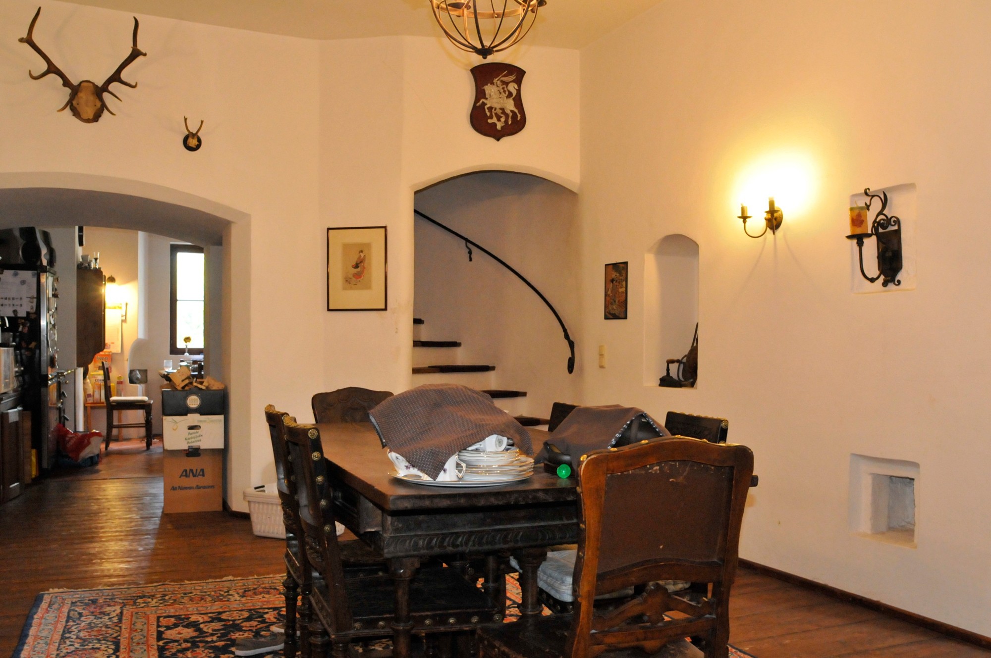 Le château, avec des murs jusqu’à 1 m d’épaisseur et de solides voûtes et plafonds en bois, a été entièrement rénové dans les années 1990. Restauré selon les plans historiques, partiellement reconstruit et renforcé structurellement, il offre aujourd’hui un confort moderne haut de gamme : chauffage central et au sol, salles de bains, électricité, sols, plâtres, toiture, escaliers et garage neufs.