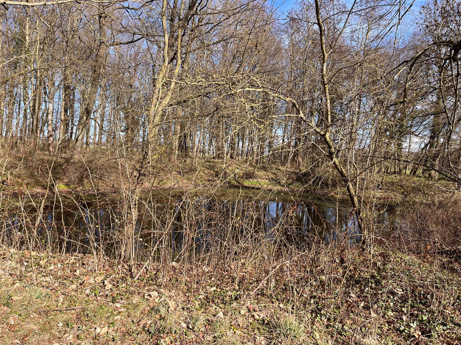 La propriété est située en périphérie du village, au sein d’un ancien parc de domaine avec un peuplement arboré partiellement préservé, principalement des hêtres, des tilleuls et des charmes. Un étang ainsi qu’un ancien bâtiment agricole sont également présents.