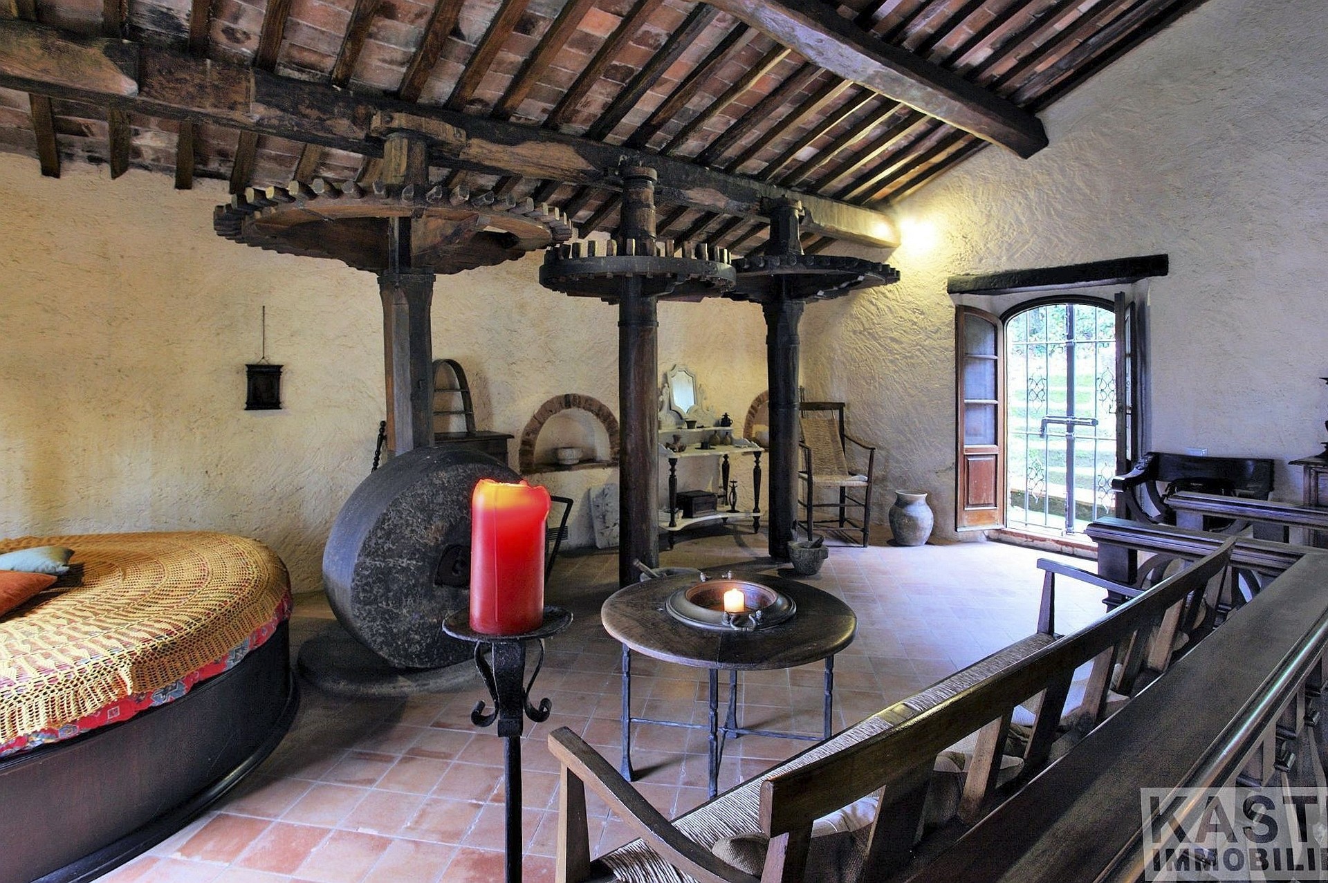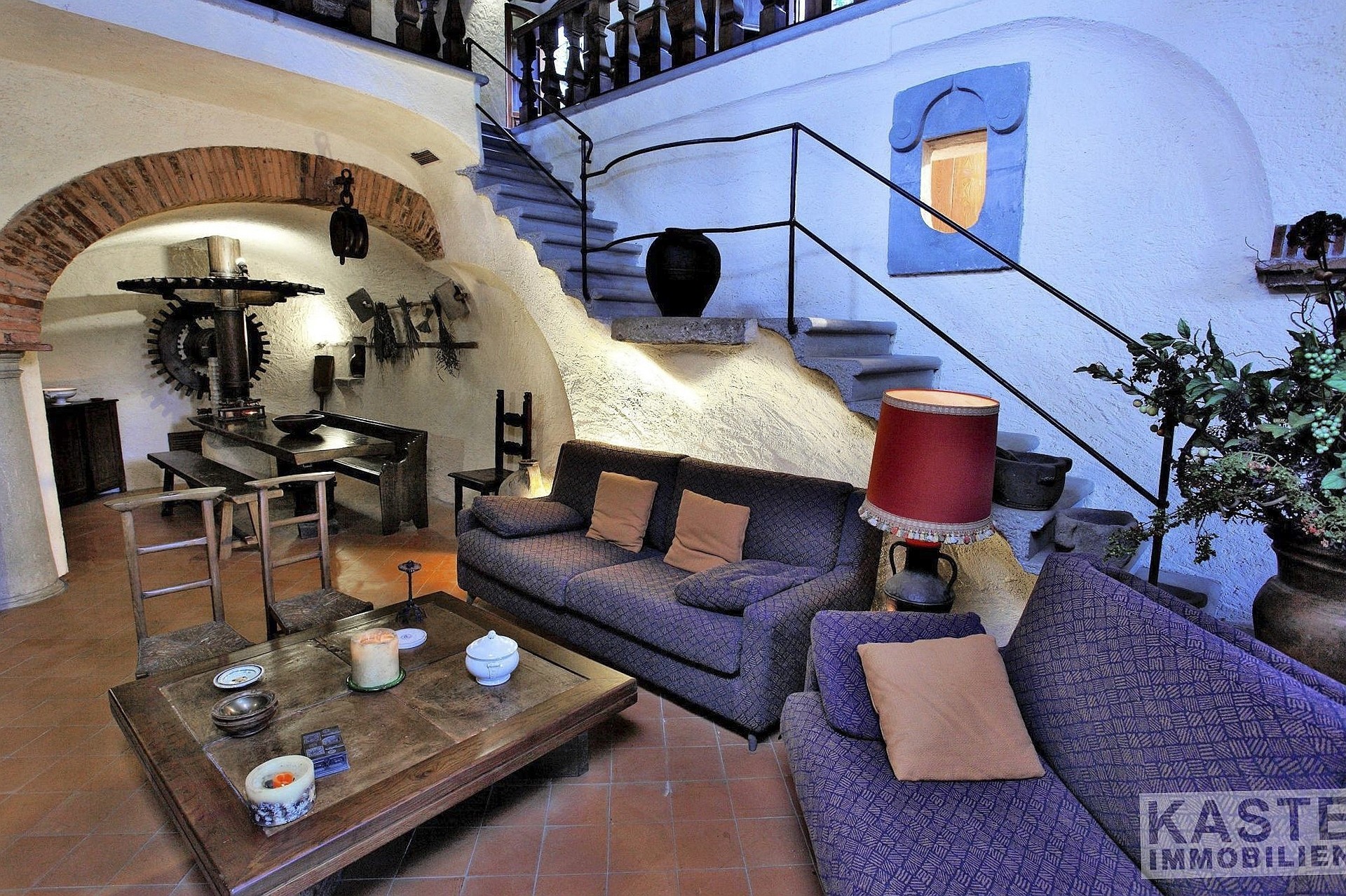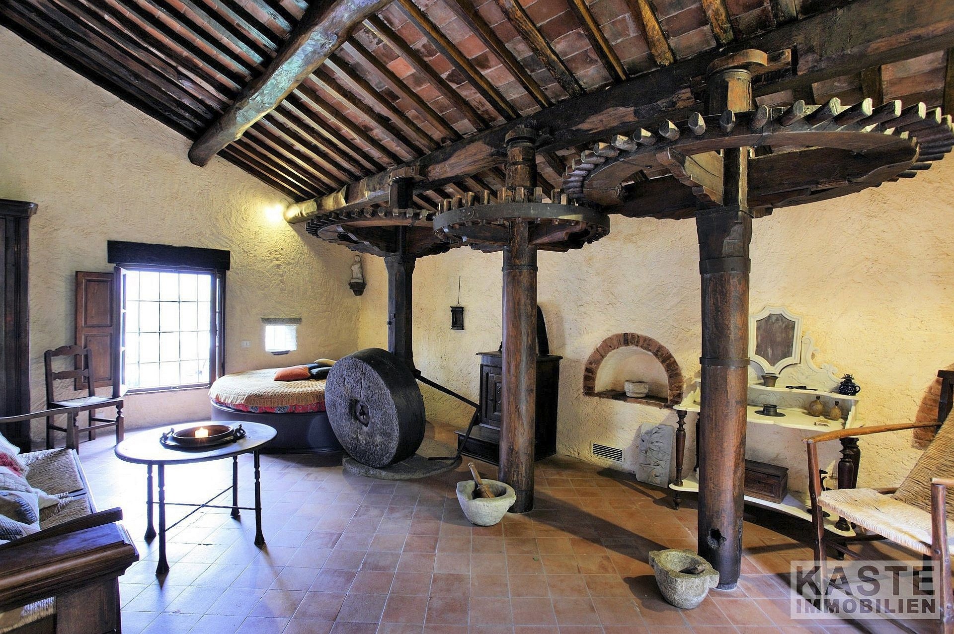 Le bâtiment indépendant offre une surface d'environ 150 mètres carrés et se distingue par son charme italien indéniable. Dans l'entrée se trouve une pièce spacieuse avec un ancien moulin à huile entièrement conservé.