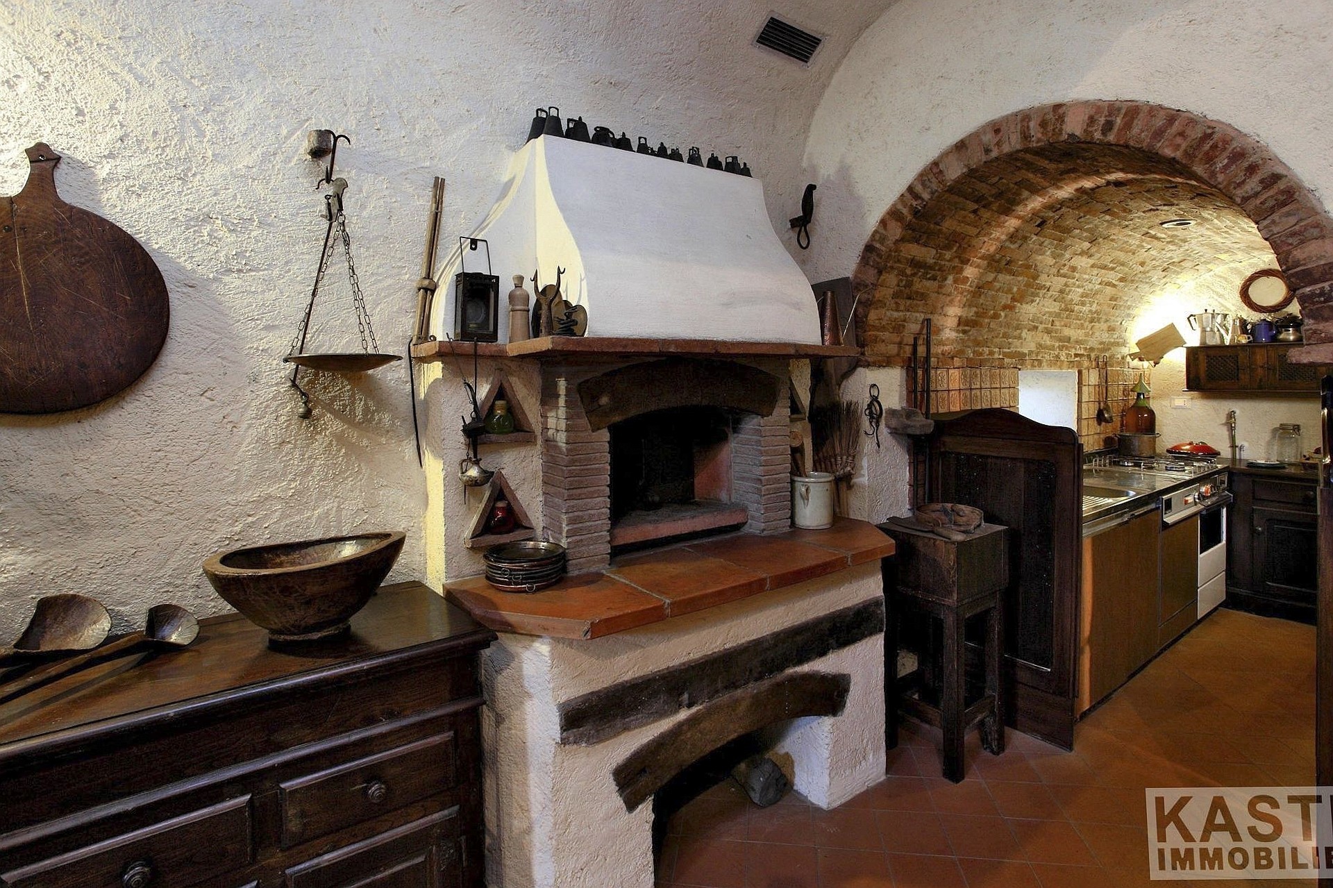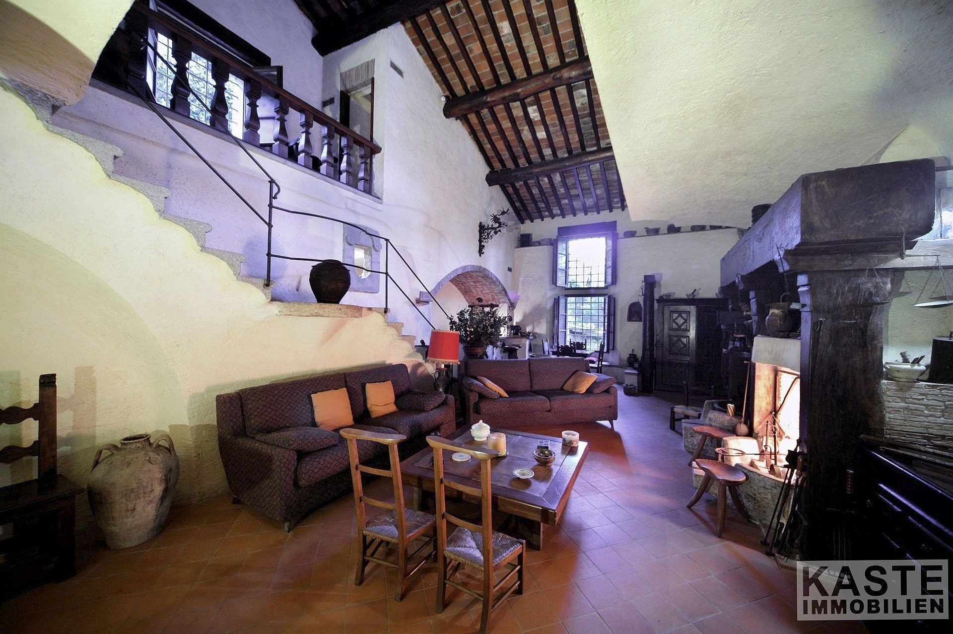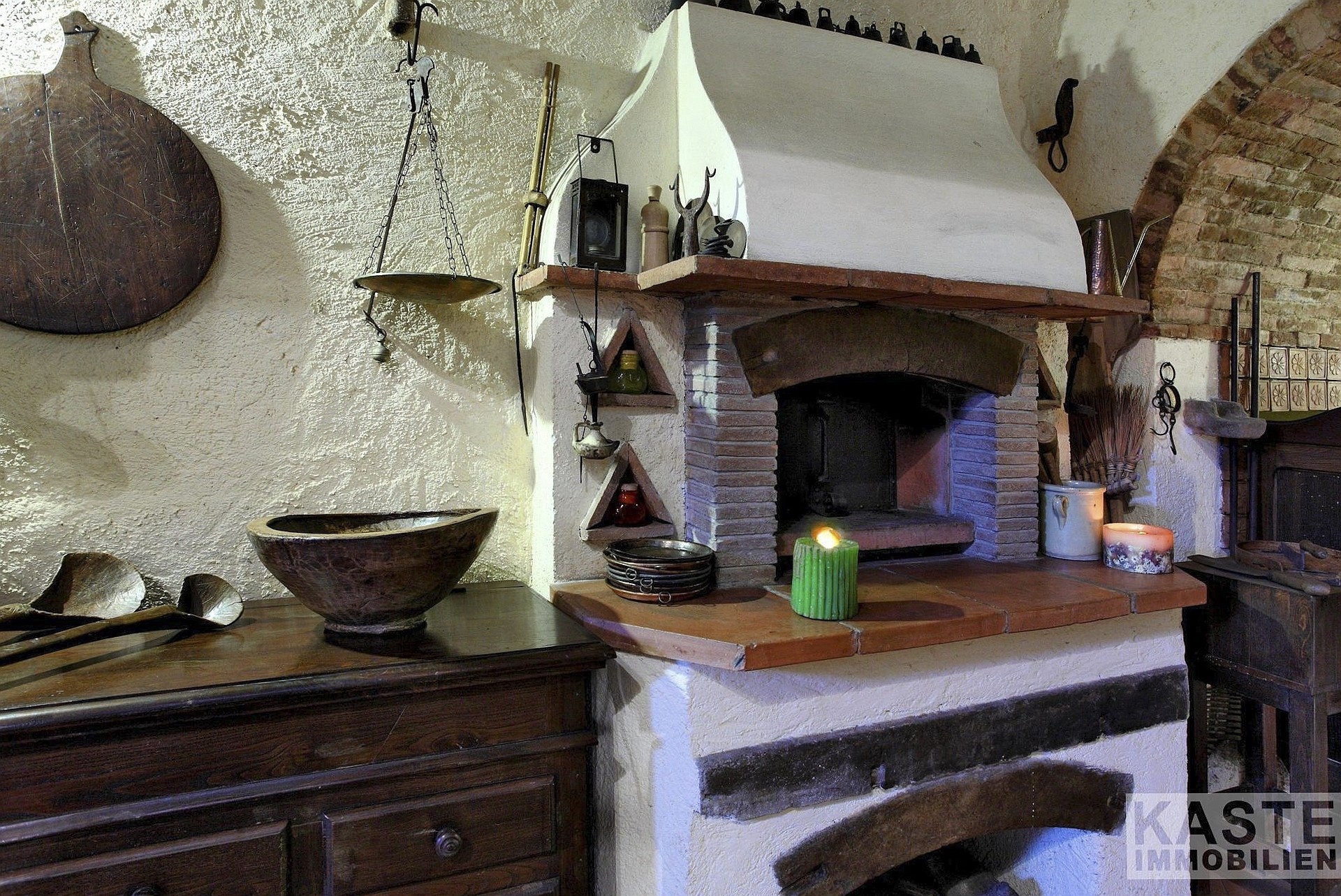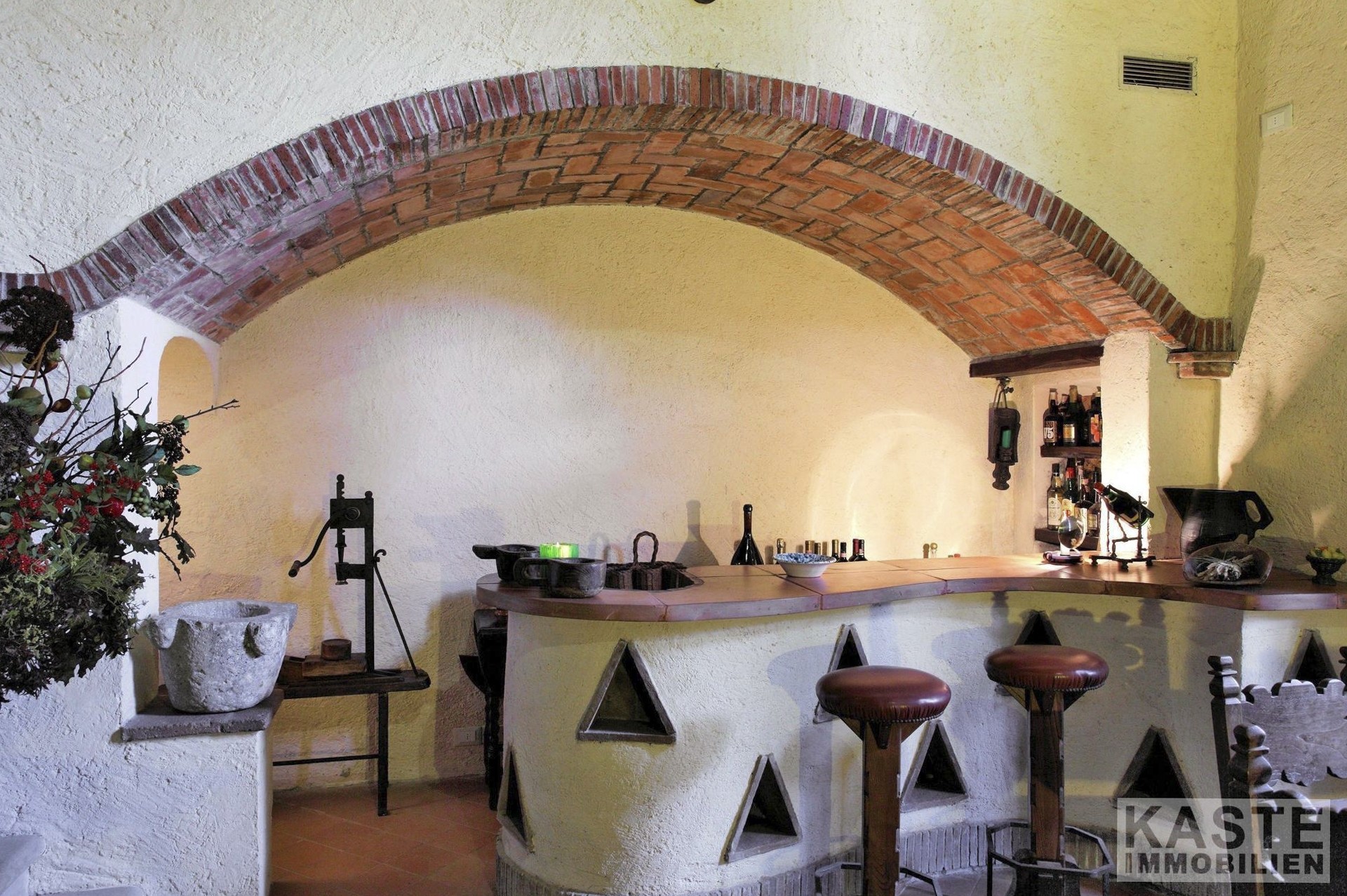 Le bâtiment indépendant offre une surface d'environ 150 mètres carrés et se distingue par son charme italien indéniable. Dans l'entrée se trouve une pièce spacieuse avec un ancien moulin à huile entièrement conservé.