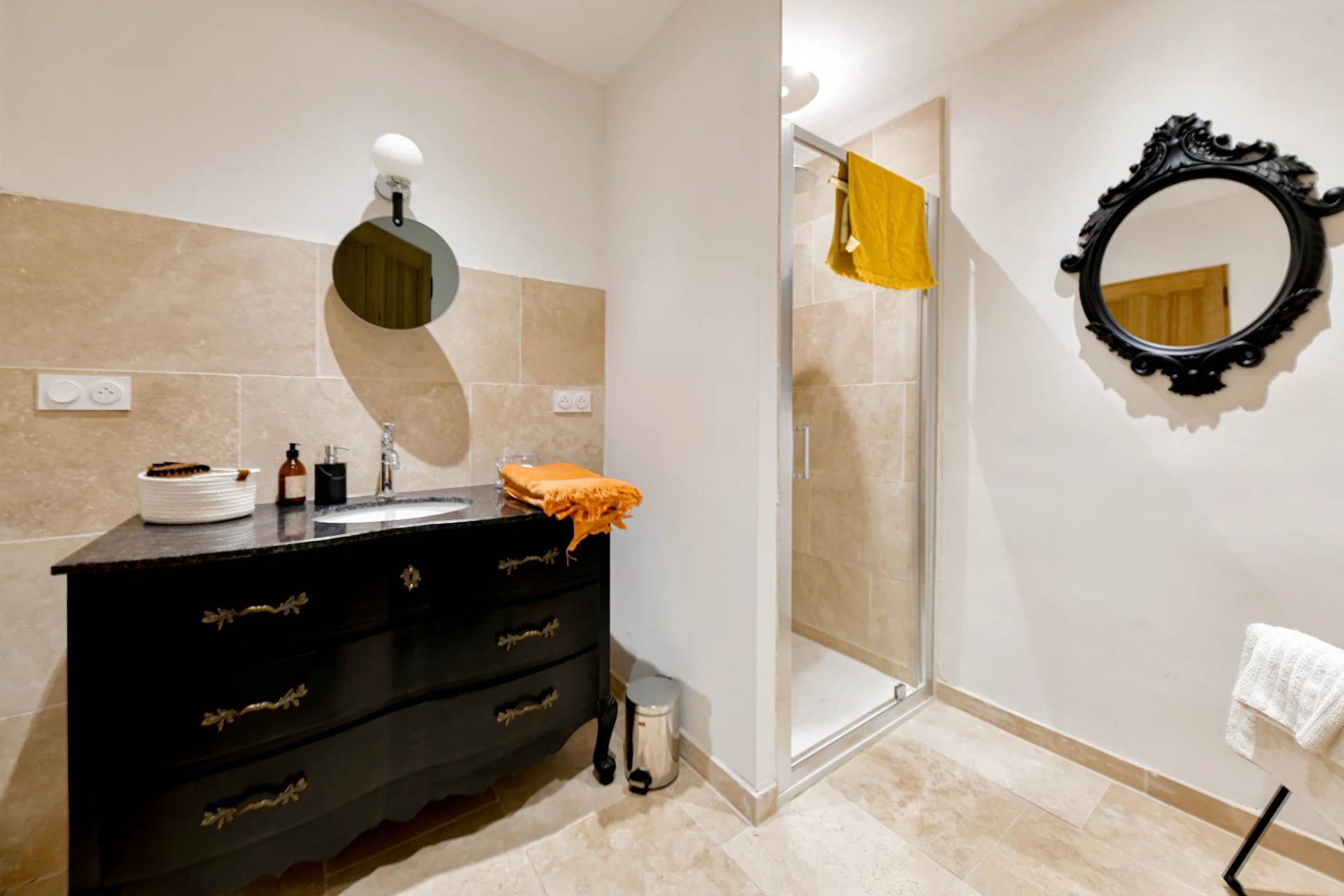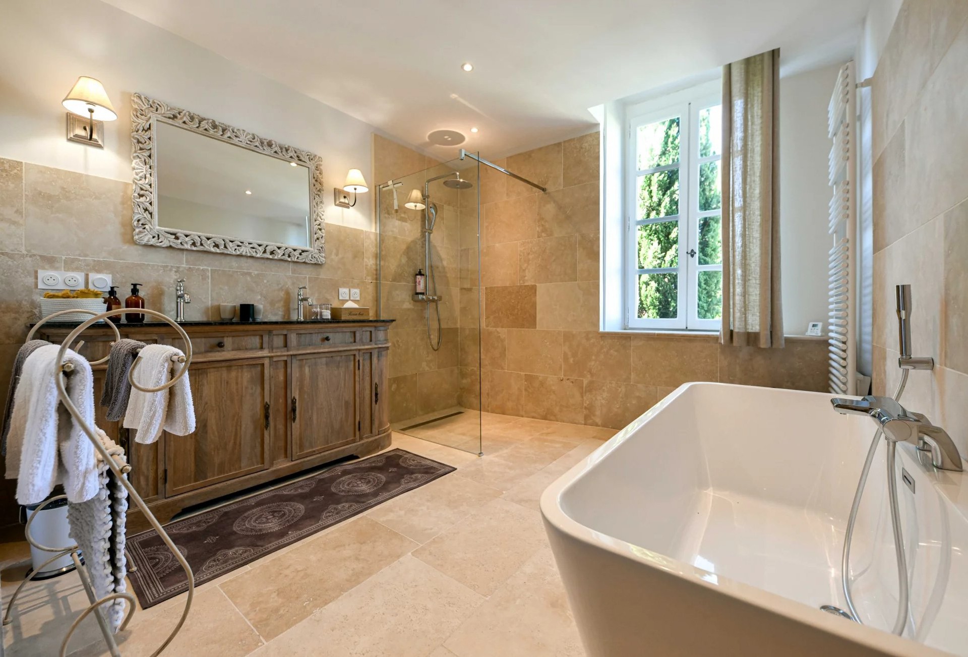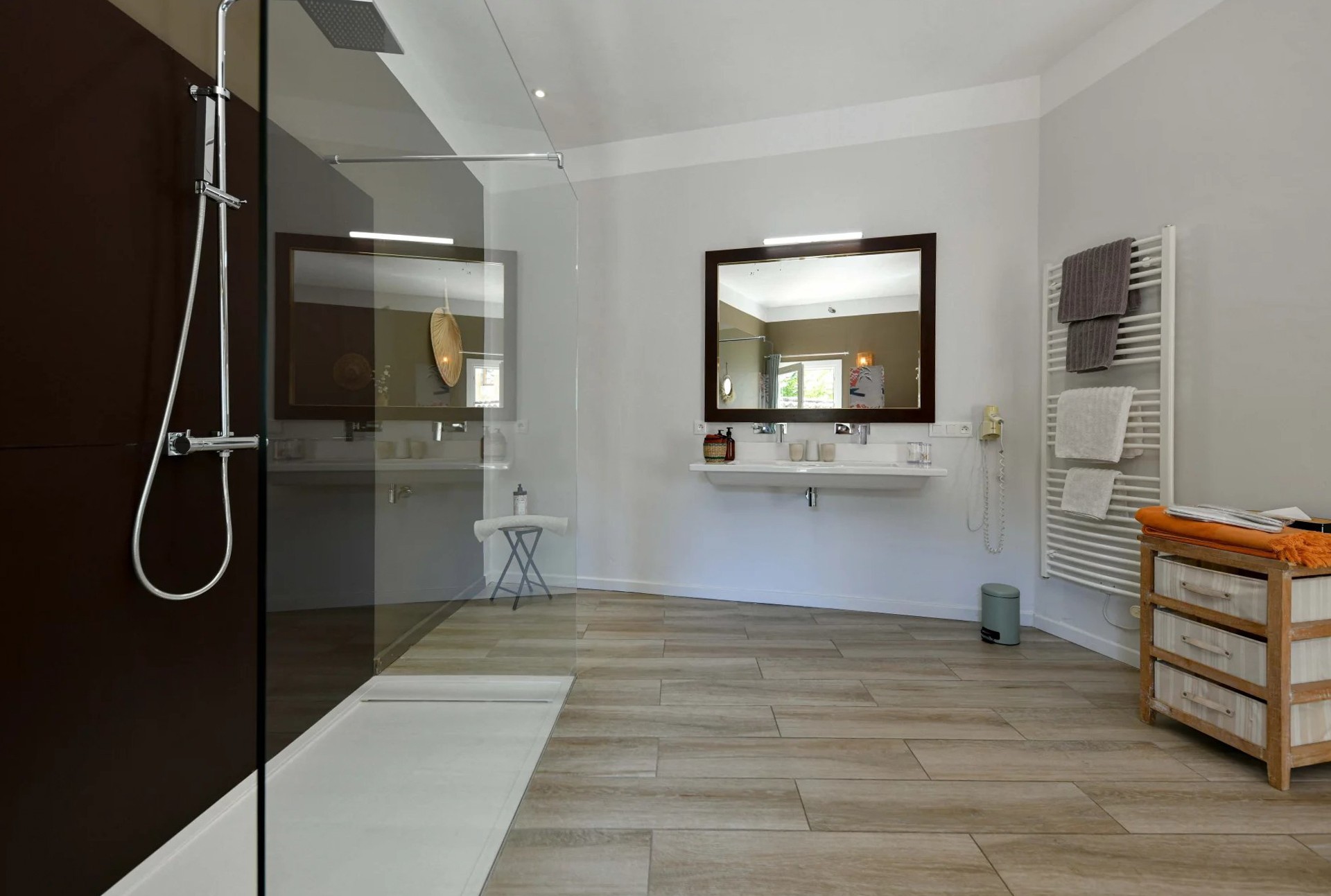 • Deux suites supplémentaires, dont l’une ouvre sur une terrasse avec vue sur la piscine, chacune bénéficiant de sa propre salle de bains.