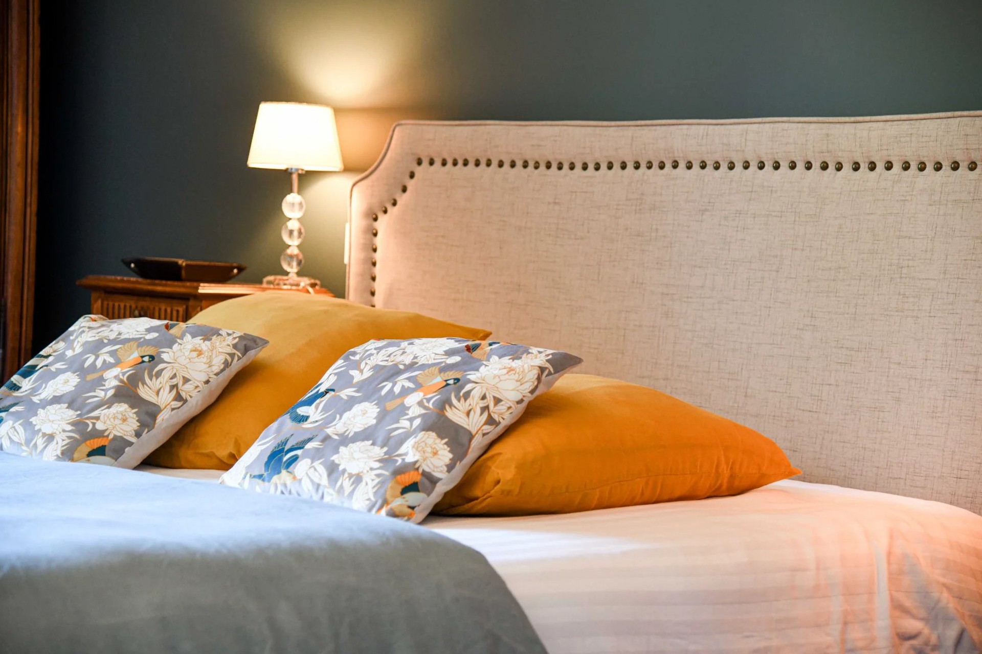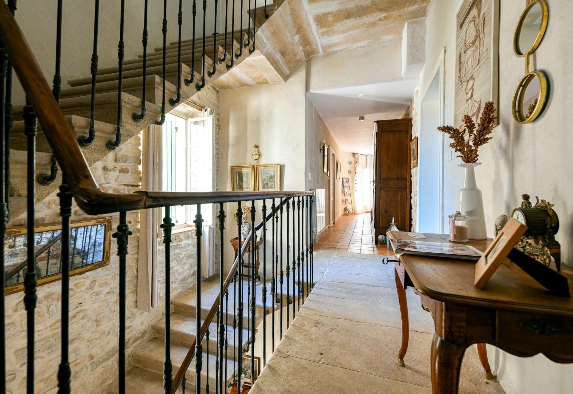Un élégant escalier en pierre conduit au premier étage, où le palier s’ouvre sur un couloir distribuant les chambres :