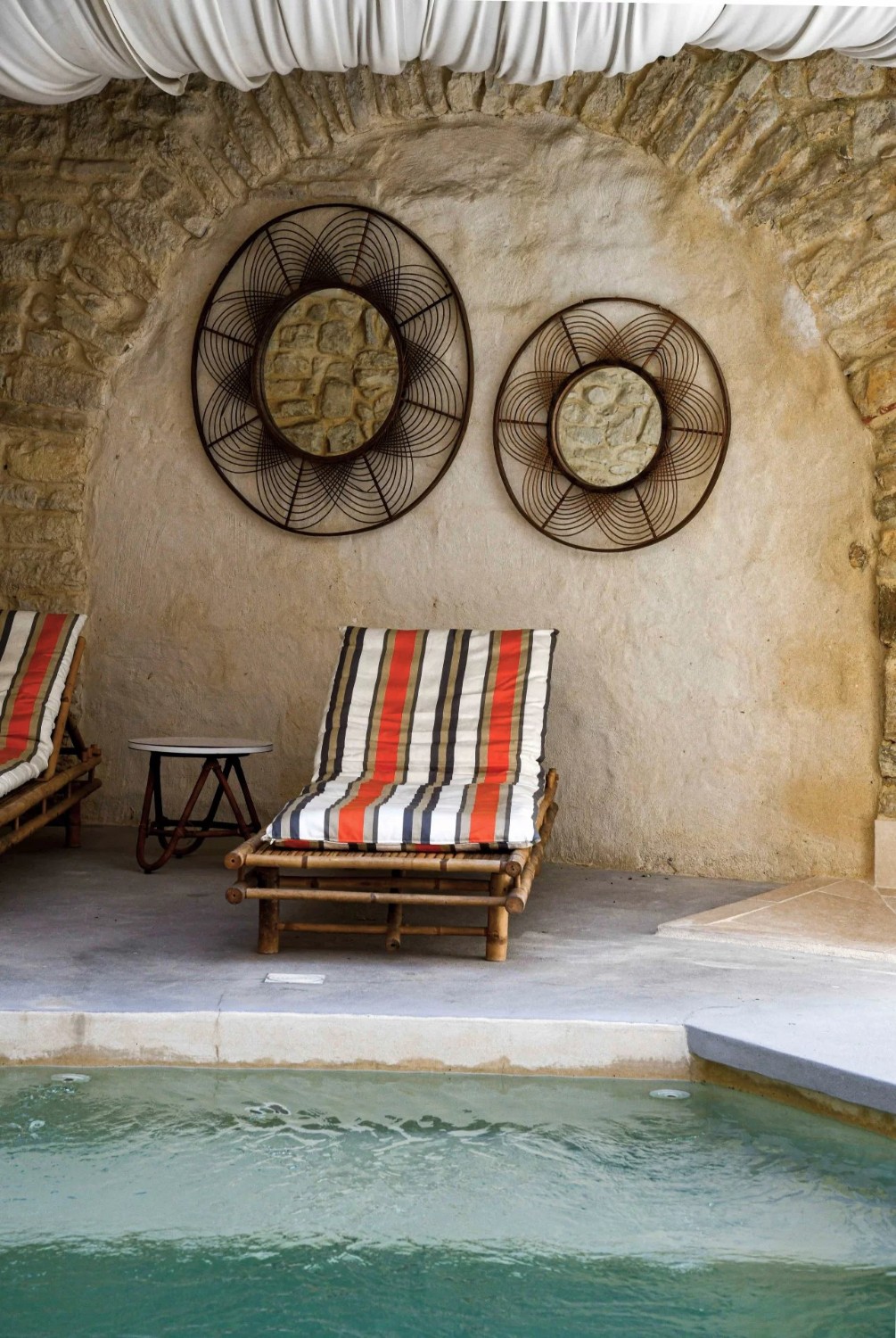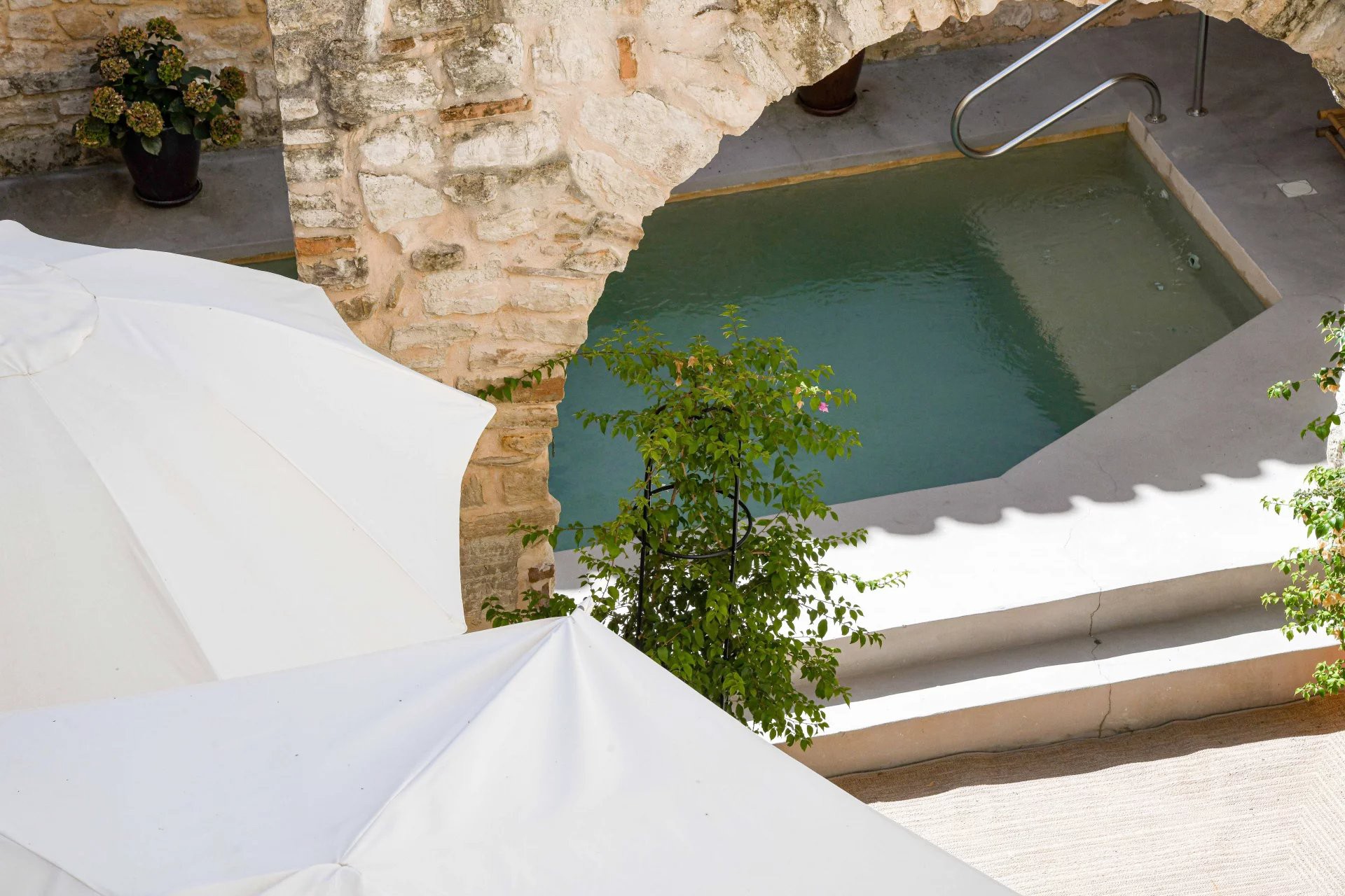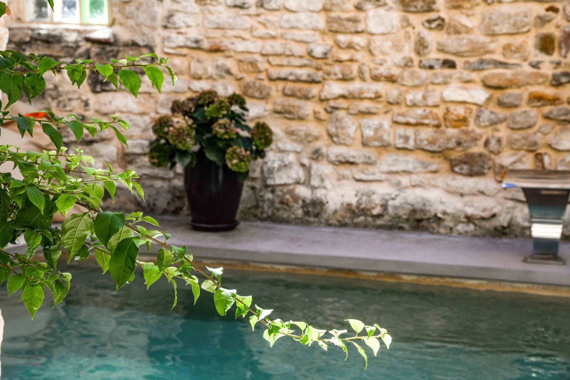 Dès l’entrée, le rez-de-chaussée séduit par un salon lumineux au plafond voûté en pierre, ouvert sur une vaste cour végétalisée. La piscine, équipée d’un système jacuzzi, s’intègre harmonieusement dans cet écrin de verdure. La cuisine attenante, elle aussi sous voûtes, est prolongée par un cellier spacieux avec cave intégrée. Une salle à manger voûtée complète ce niveau, offrant des espaces de vie chaleureux et accueillants.