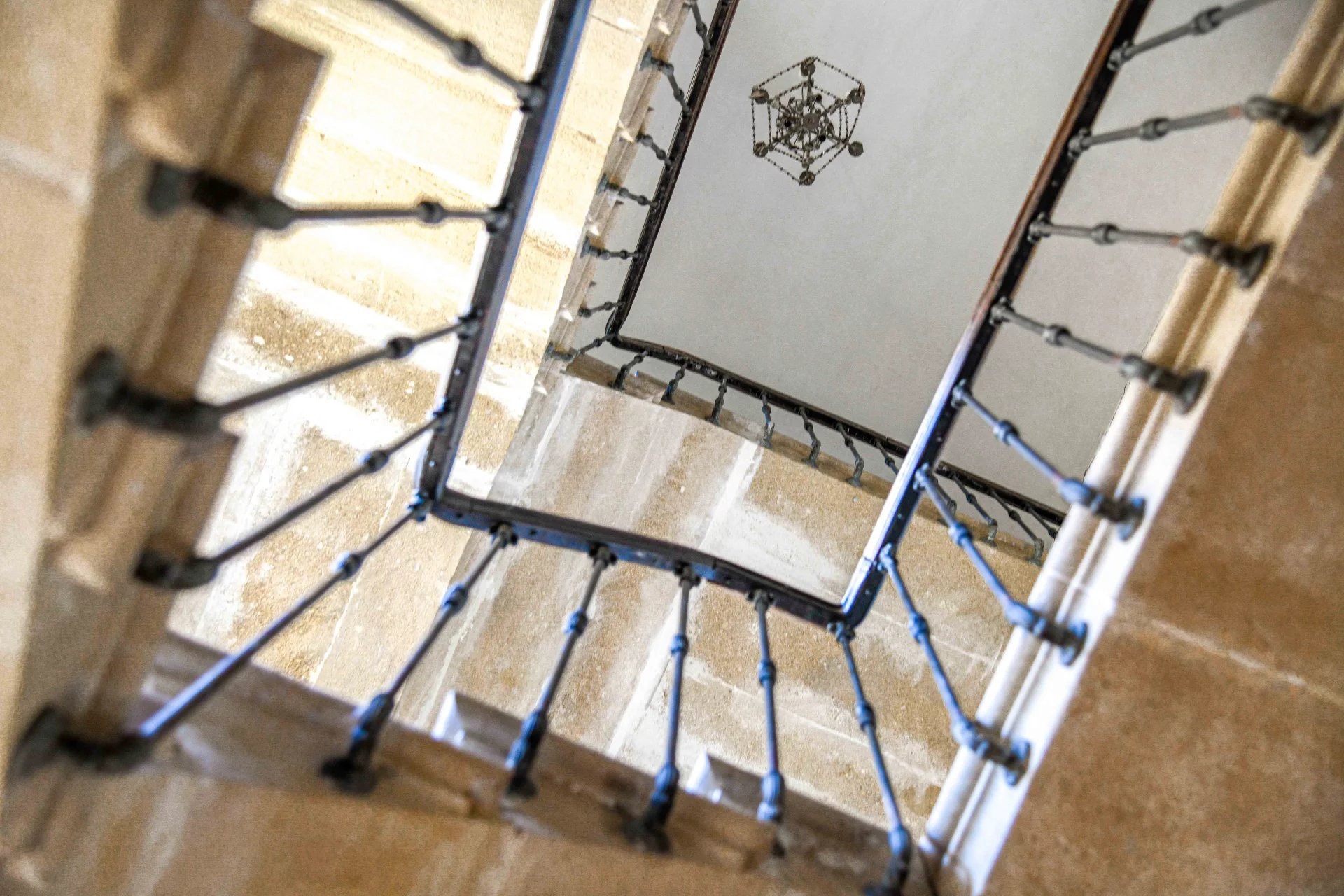 Hall d'entrée Grand escalier Cheminée Balcon Terrasse Plafonds hauts Plafonds voûtés Cour intérieure
