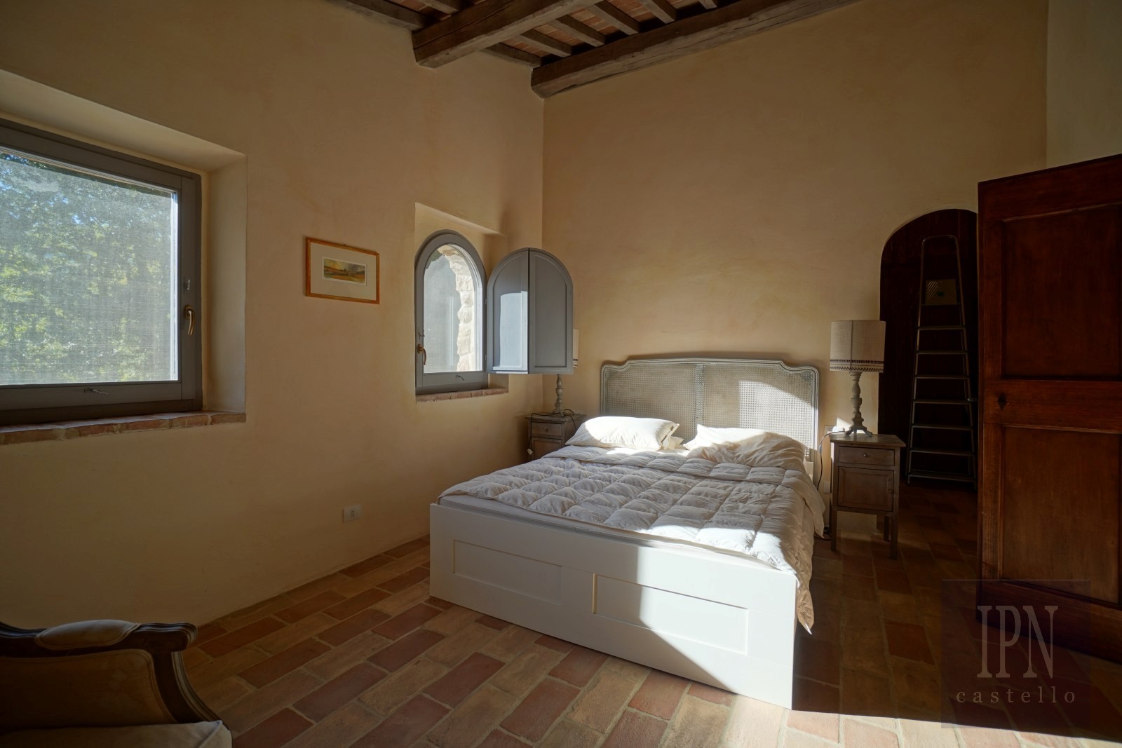 Al piano terra si trova anche una camera doppia con bagno privato e un’ampia lavanderia. Una scala conduce al piano superiore con le camere principali. La camera padronale dispone di bagno privato, mentre altre due camere doppie con letti separati hanno ciascuna il proprio bagno.