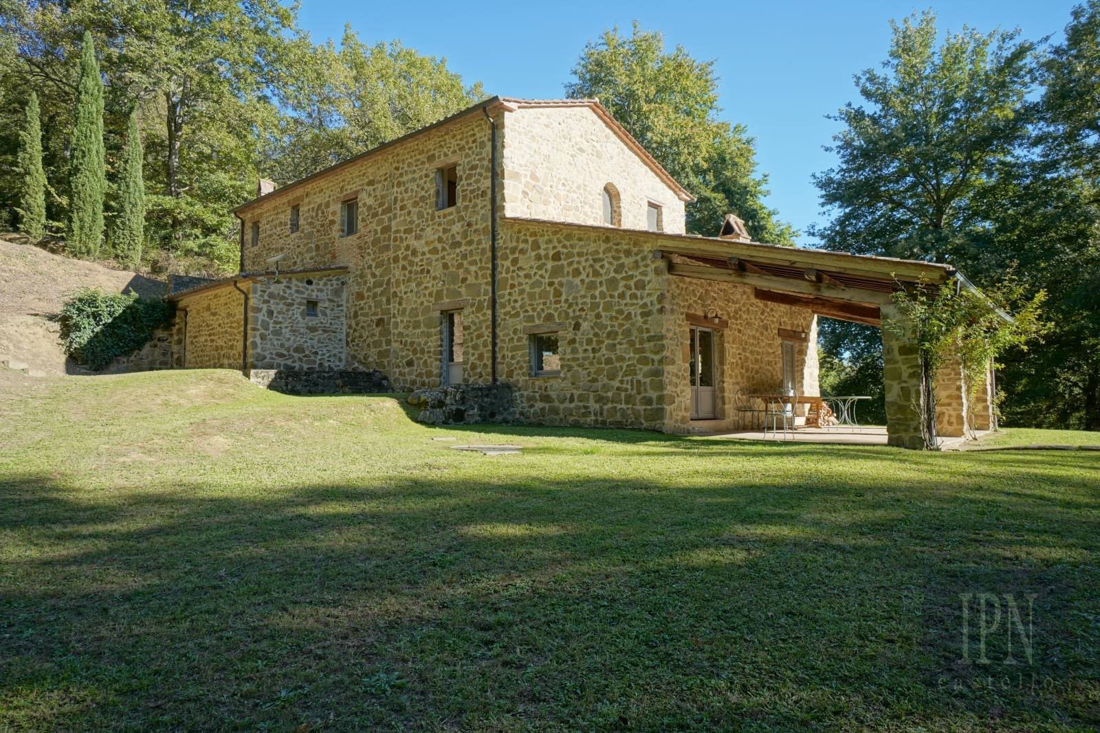 Casa Bosco del Niccone è stata accuratamente restaurata, conservando dettagli tradizionali come finestre e porte ad arco, travi a vista, pavimenti in cotto fatti a mano, cornici in pietra attorno alle finestre e pareti in pietra naturale a vista. I soffitti sono realizzati con mattoni artigianali. La casa dispone di comfort moderni come doppi vetri, illuminazione esterna e parcheggio privato.
