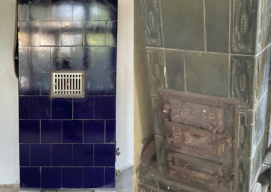 Portoni intagliati, scala rappresentativa, stufe in maiolica e serramenti storici conservati.