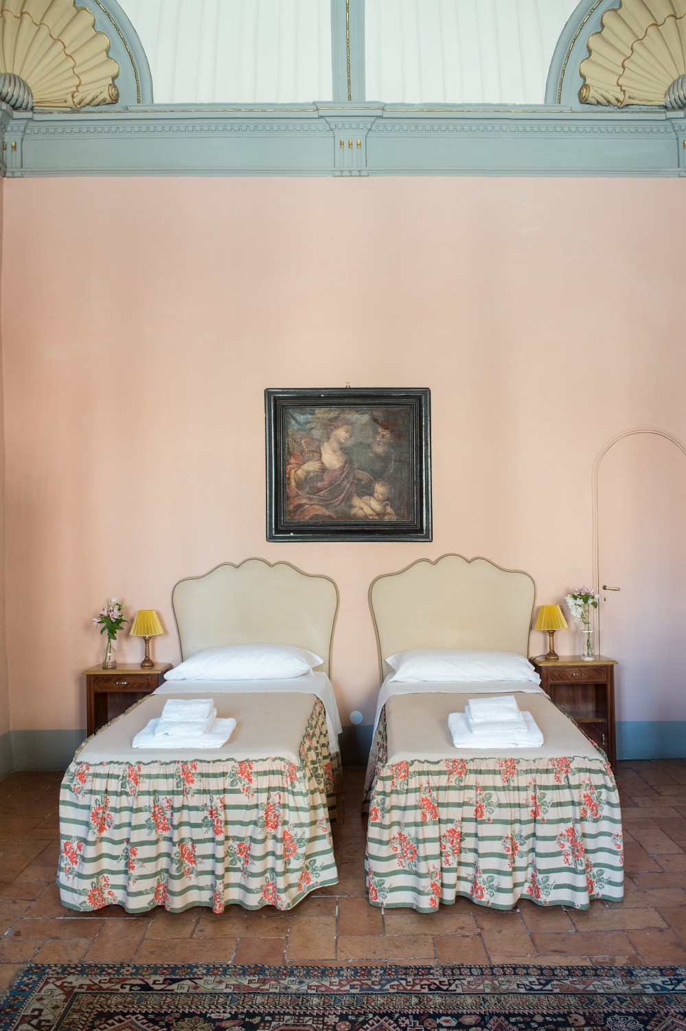 Restauri accurati hanno preservato l’autenticità di Palazzo Merletti, integrando comfort contemporanei come aria condizionata, sistemi di sicurezza e connessione ad alta velocità, senza compromettere il carattere antico della struttura. Il palazzo dispone di sei lussuose suite matrimoniali, ciascuna con un carattere unico, alcune con pareti affrescate in toni pastello o travi a vista, e bagni privati moderni con finiture in marmo. Due cucine, una moderna attrezzata con elettrodomestici di alta gamma e una tradizionale con un grande camino antico, soddisfano sia le esigenze quotidiane sia quelle di eventi importanti, accompagnate da una sala da pranzo formale e da aree più informali per colazioni e momenti di relax.
