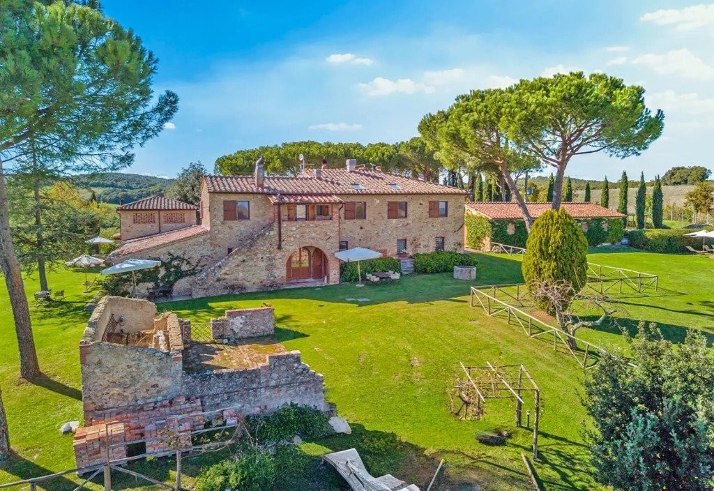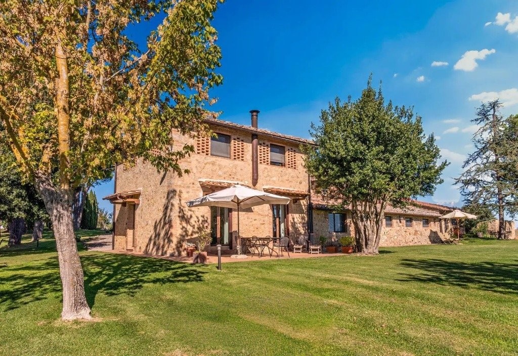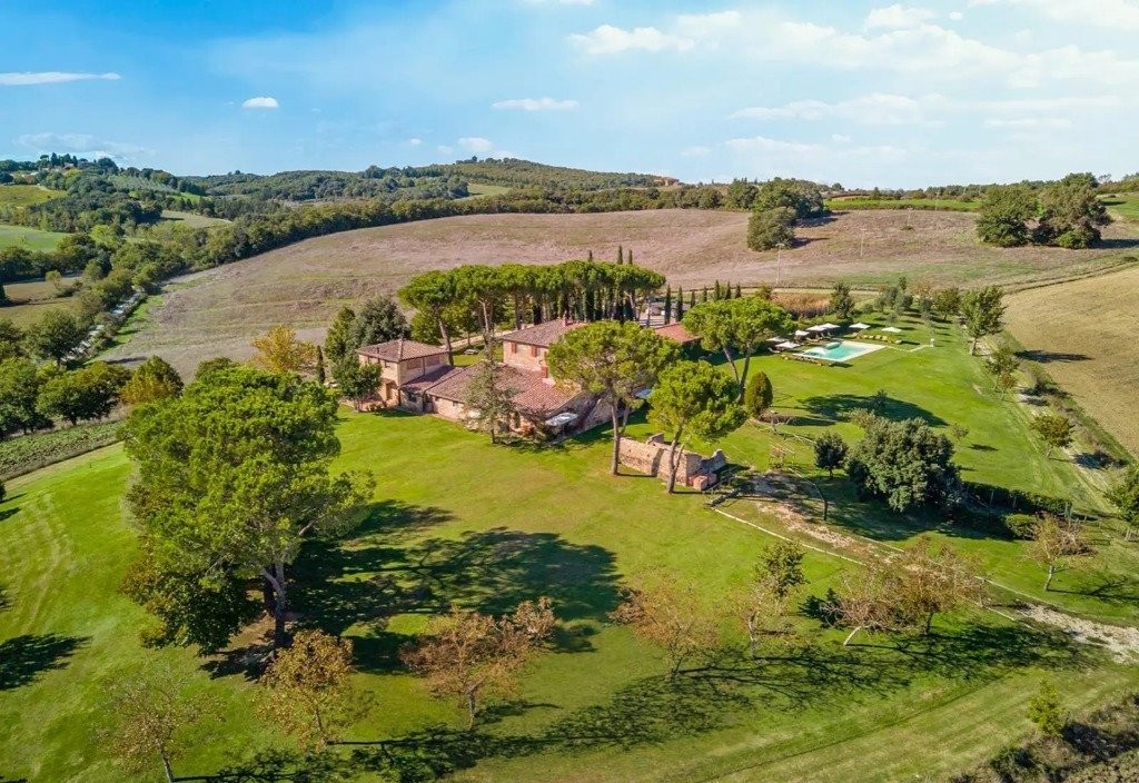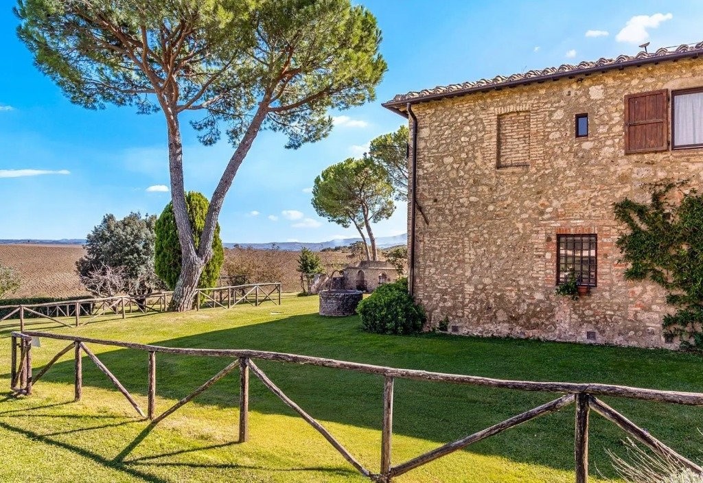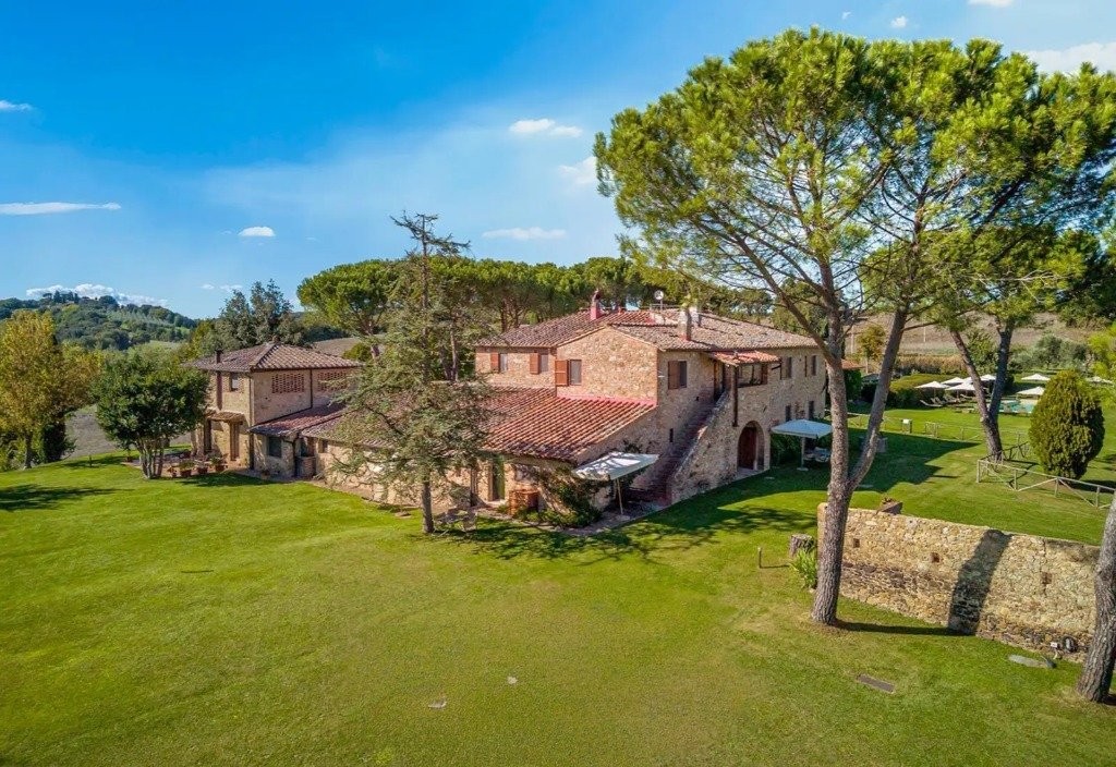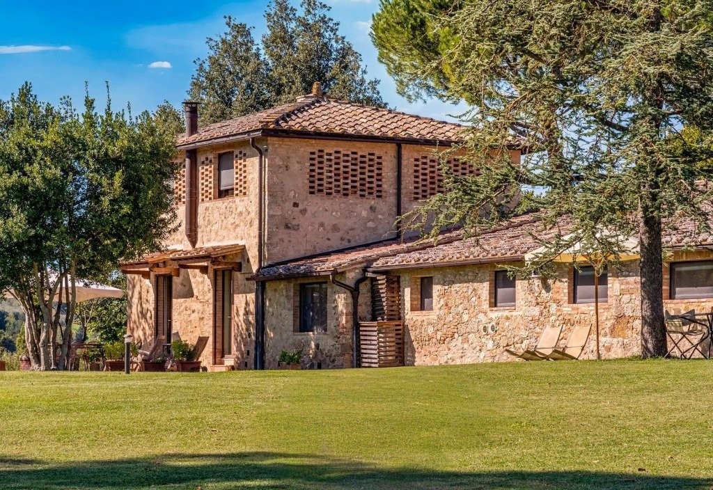 Ein restauriertes toskanisches Landhaus mit 760 m² Wohnfläche auf 1,5 Hektar Privatgrund, gelegen zwischen den Lehmhügeln der Crete Senesi und dem Val d'Orcia. Das Gebäude ist in sechs unabhängige Apartments unterteilt mit insgesamt dreizehn Schlafzimmern und neun Badezimmern. Große Fenster rahmen den freien Blick auf die umliegenden Hügel und Wälder.
