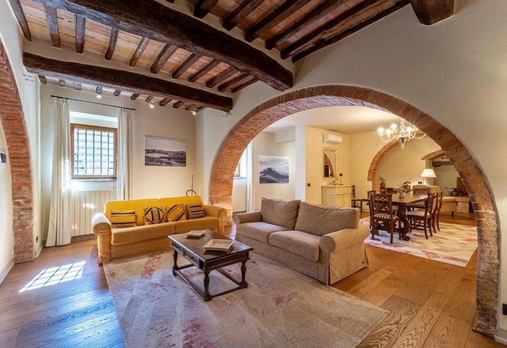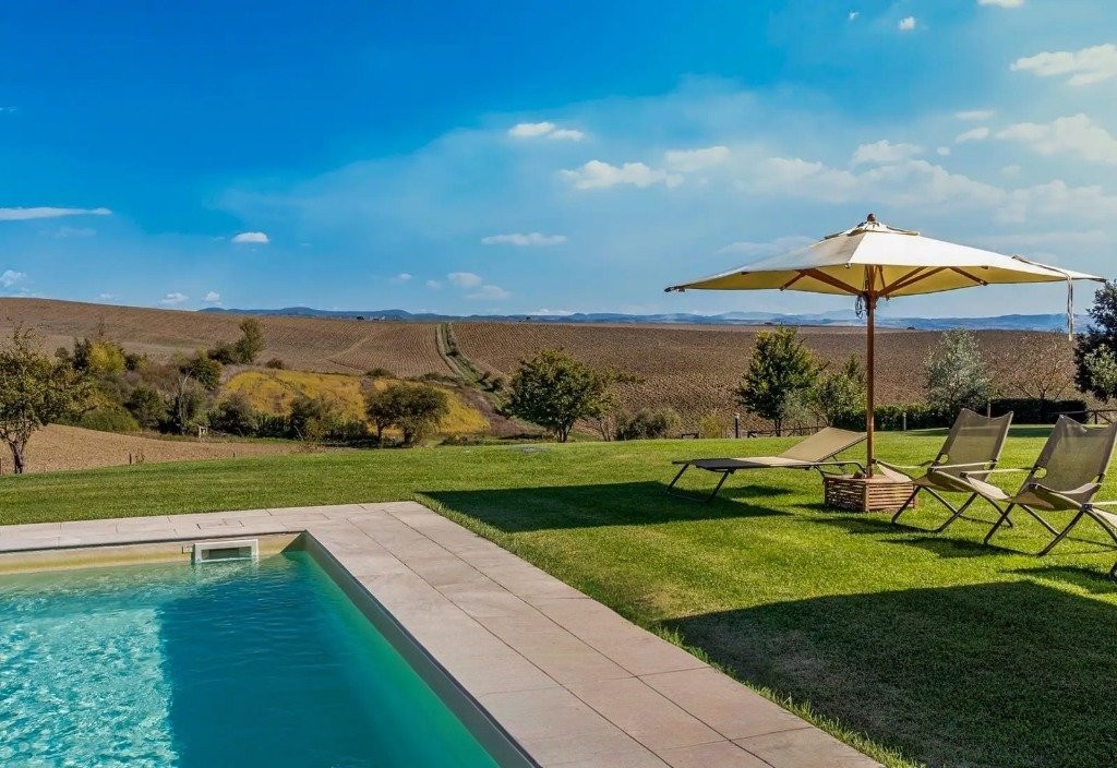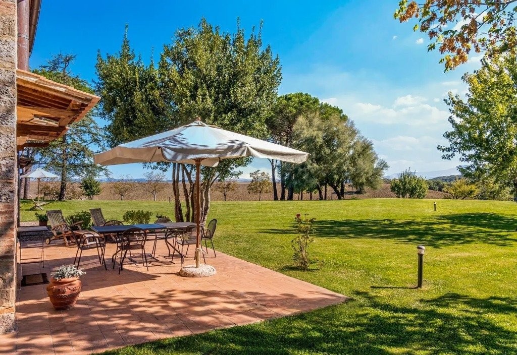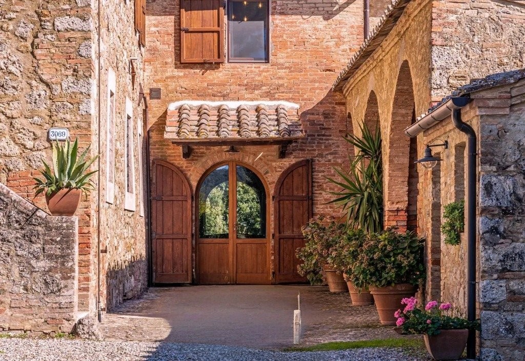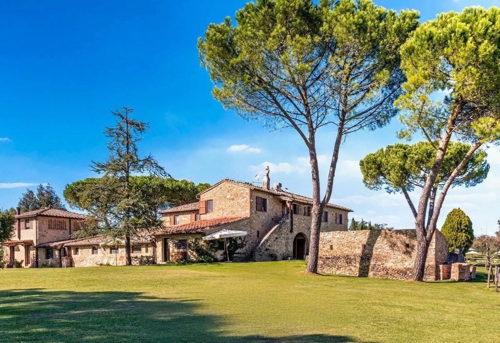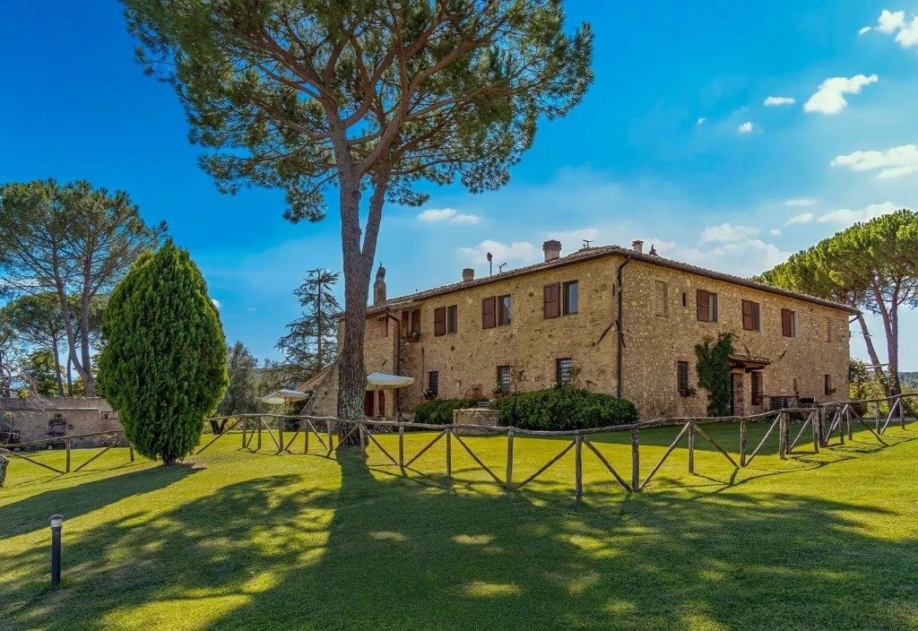 Ein restauriertes toskanisches Landhaus mit 760 m² Wohnfläche auf 1,5 Hektar Privatgrund, gelegen zwischen den Lehmhügeln der Crete Senesi und dem Val d'Orcia. Das Gebäude ist in sechs unabhängige Apartments unterteilt mit insgesamt dreizehn Schlafzimmern und neun Badezimmern. Große Fenster rahmen den freien Blick auf die umliegenden Hügel und Wälder.