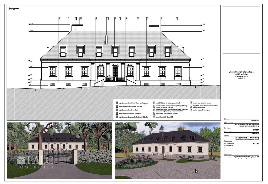 Das Schloss wurde um 1780 von György Chernel errichtet. Es handelt sich um ein denkmalgeschütztes, dreigeschossiges Gebäude in massiver Ziegelbauweise auf einem ca. 5 Hektar großen Parkgrundstück.