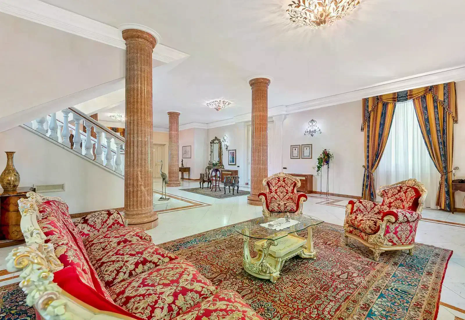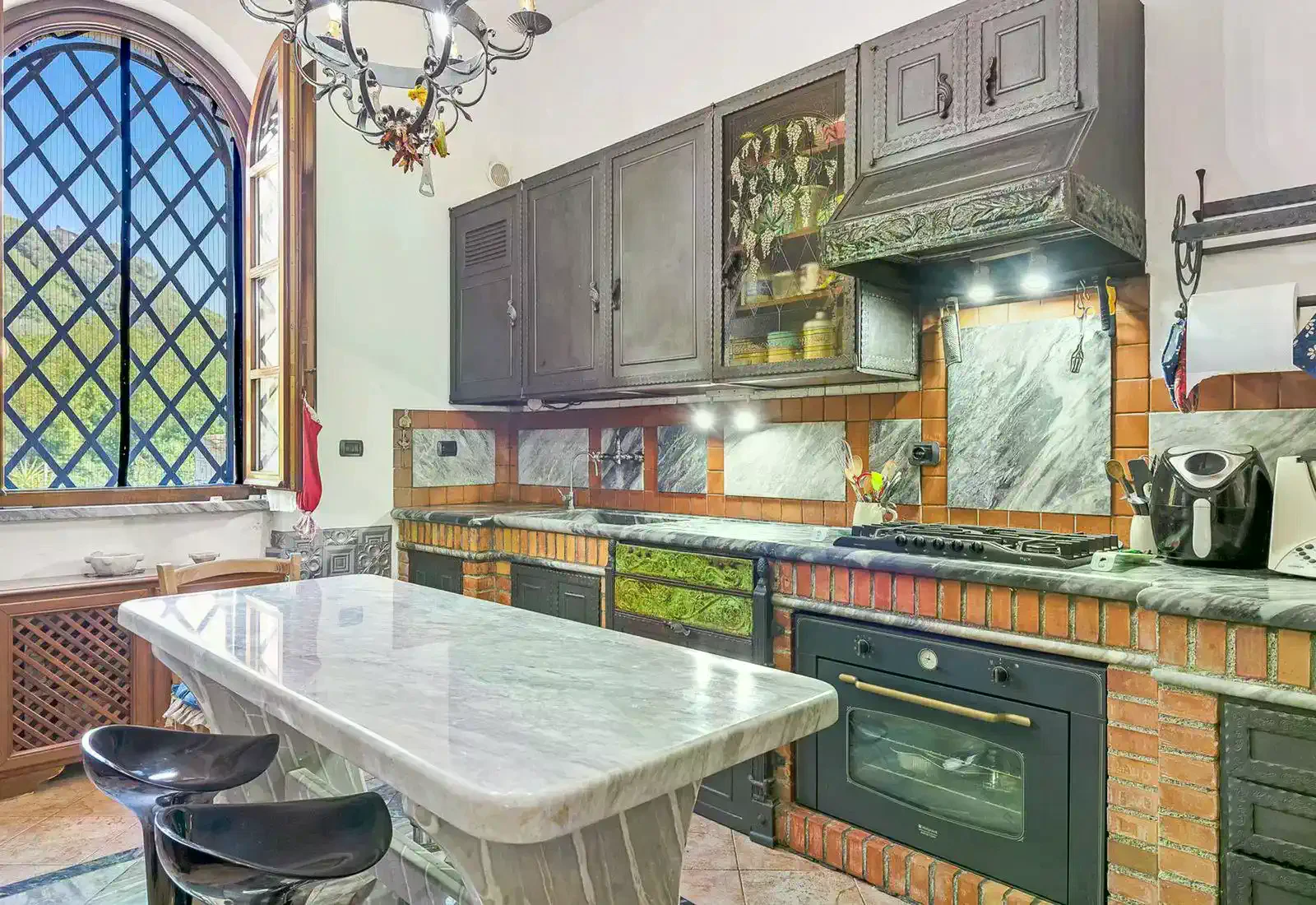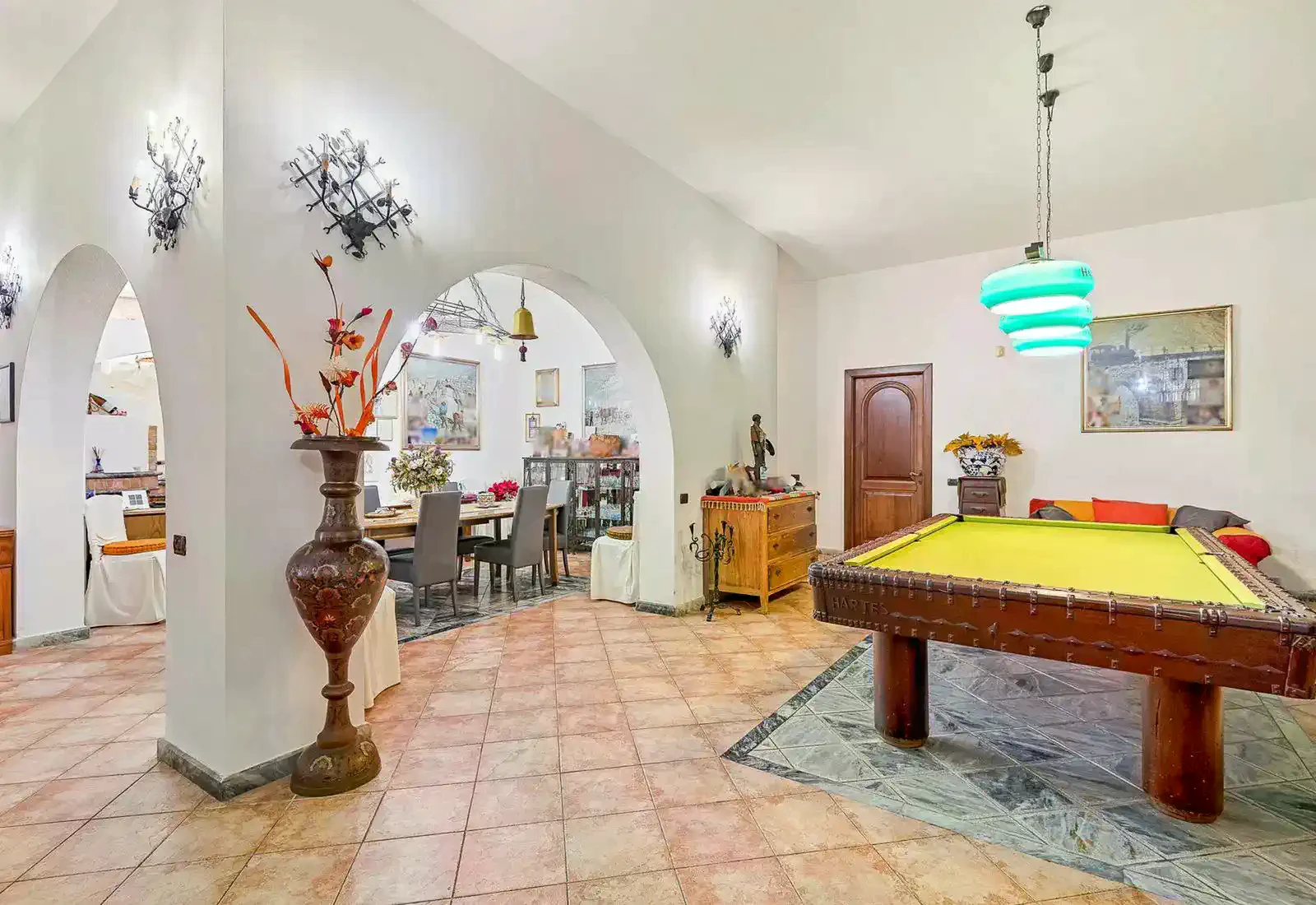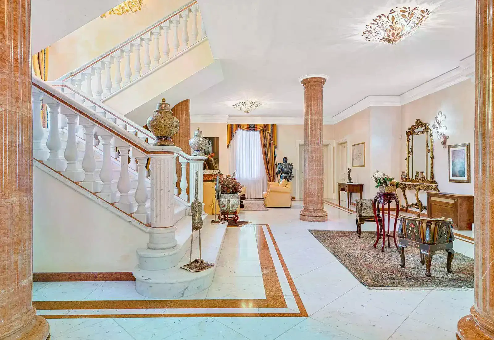 La villa segue una struttura storica su due livelli, restaurata integralmente con attenzione agli elementi architettonici originali e alla funzionalità contemporanea. L'atrio d'ingresso conduce a una sala di rappresentanza caratterizzata da un camino d'epoca. Una sala da pranzo adiacente si collega a due cucine completamente attrezzate: una concepita per pranzi conviviali e presentazioni culinarie, l'altra configurata per operazioni di catering professionale.
