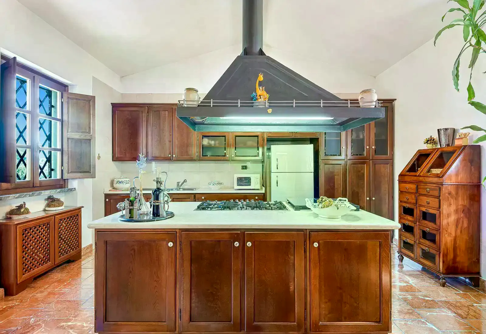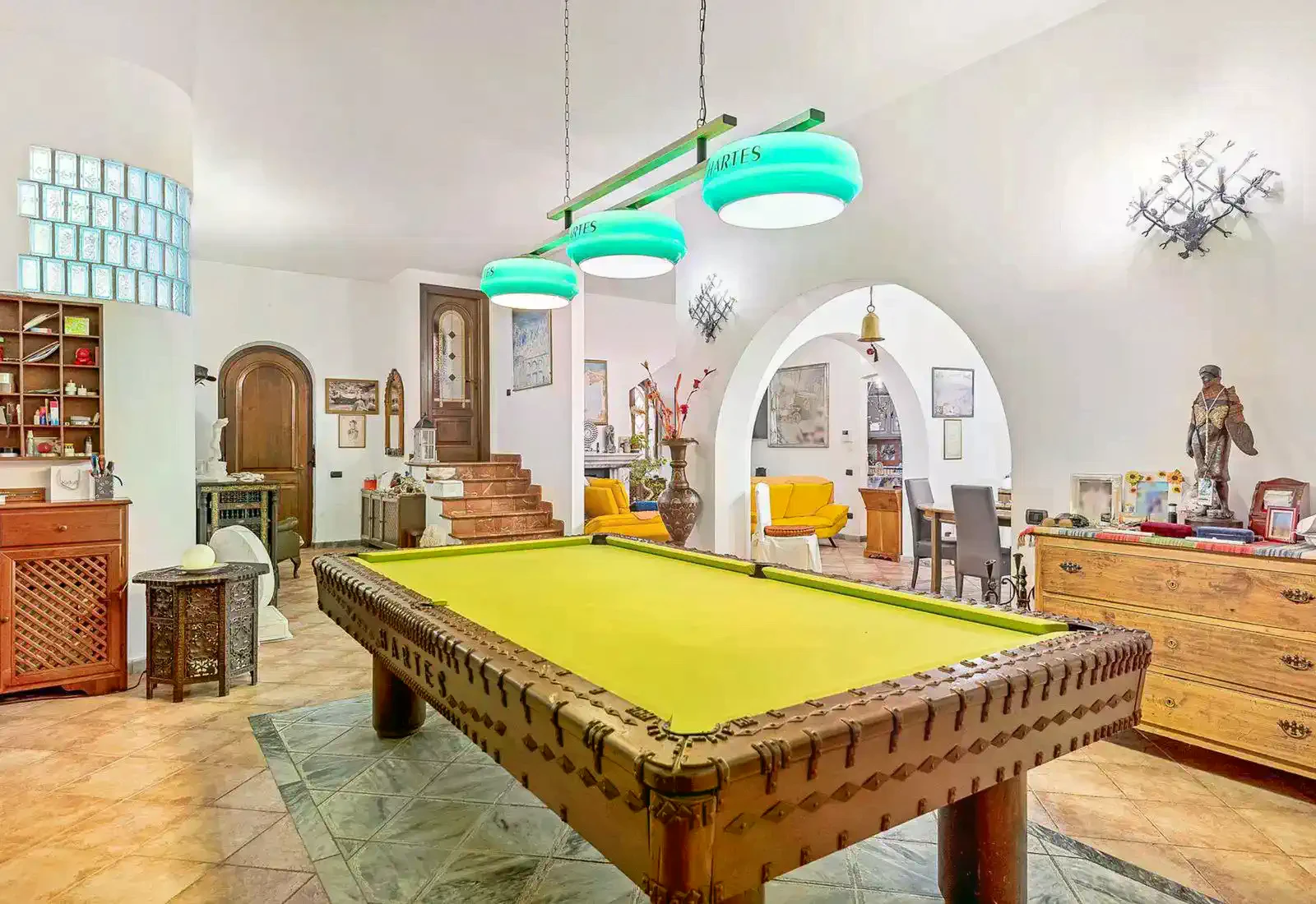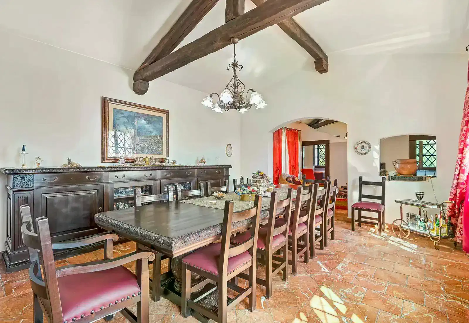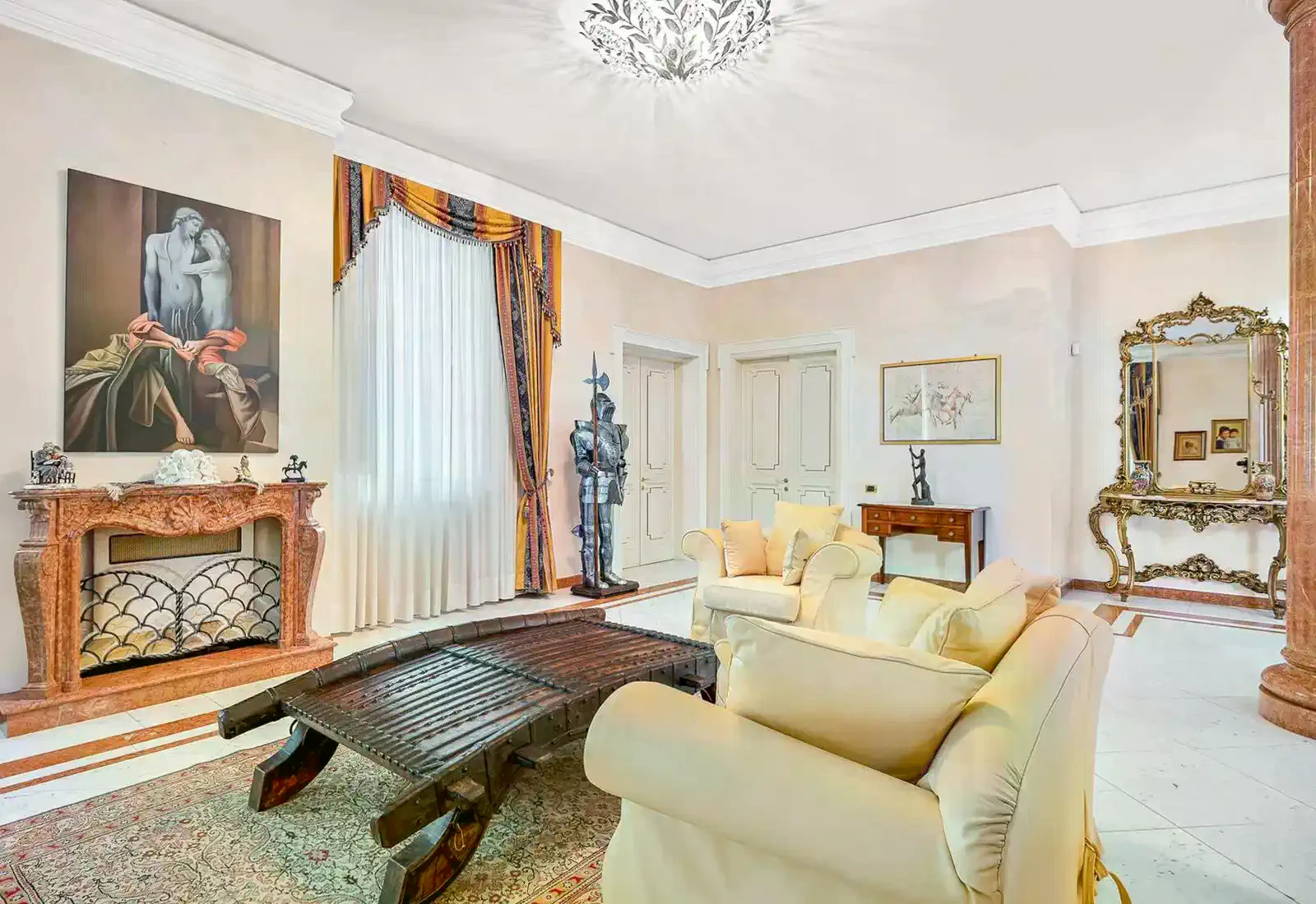 La villa segue una struttura storica su due livelli, restaurata integralmente con attenzione agli elementi architettonici originali e alla funzionalità contemporanea. L'atrio d'ingresso conduce a una sala di rappresentanza caratterizzata da un camino d'epoca. Una sala da pranzo adiacente si collega a due cucine completamente attrezzate: una concepita per pranzi conviviali e presentazioni culinarie, l'altra configurata per operazioni di catering professionale.
