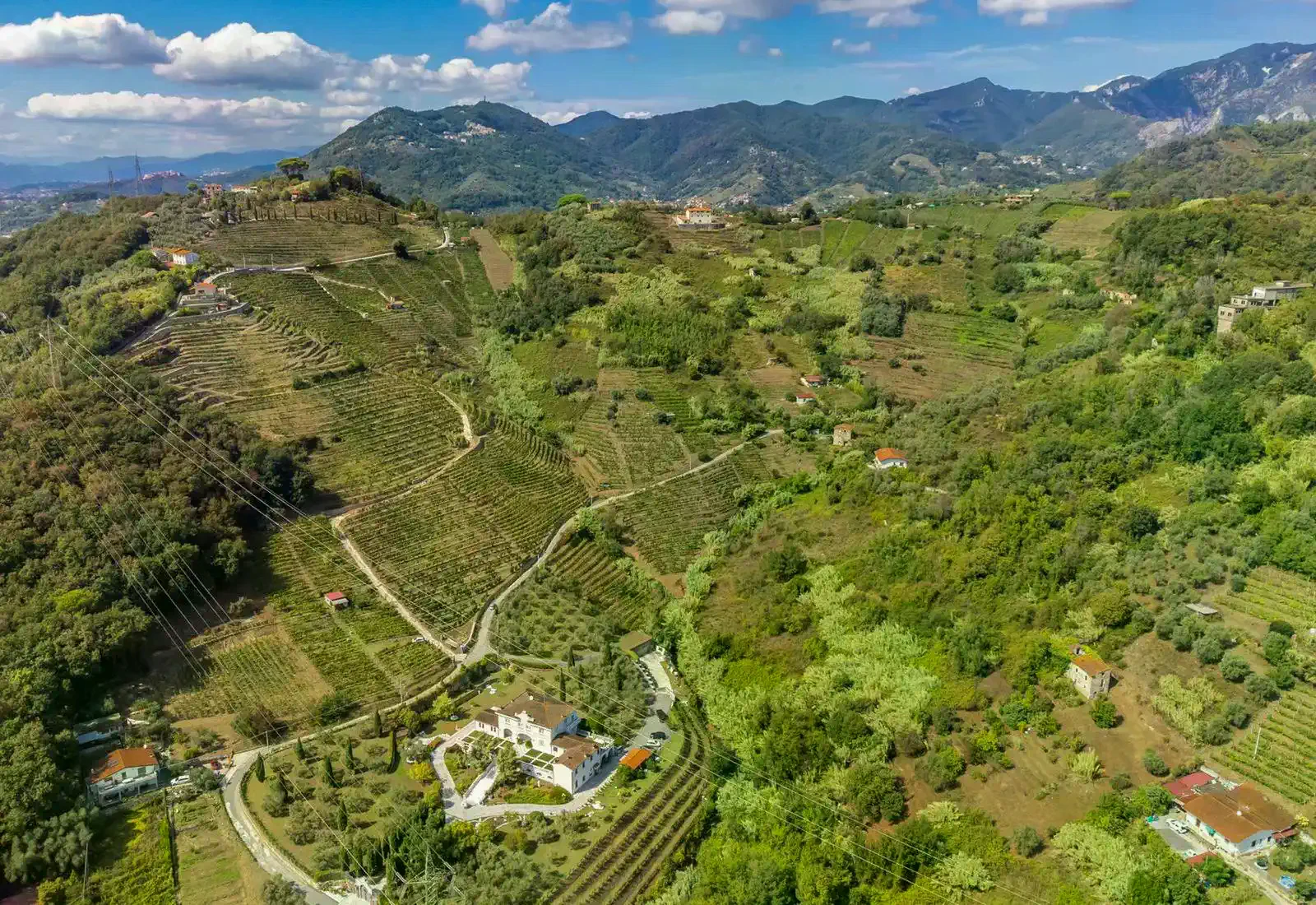 Il vigneto mantiene capacità produttiva. La topografia e le piantagioni mature garantiscono schermatura visiva dalle proprietà adiacenti preservando le vedute verso le Alpi Apuane.