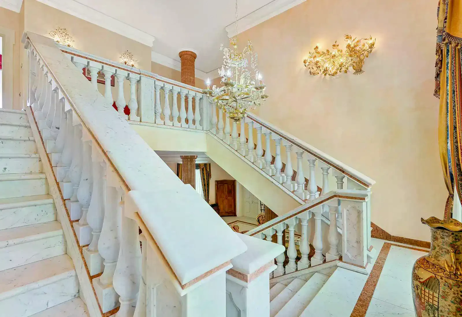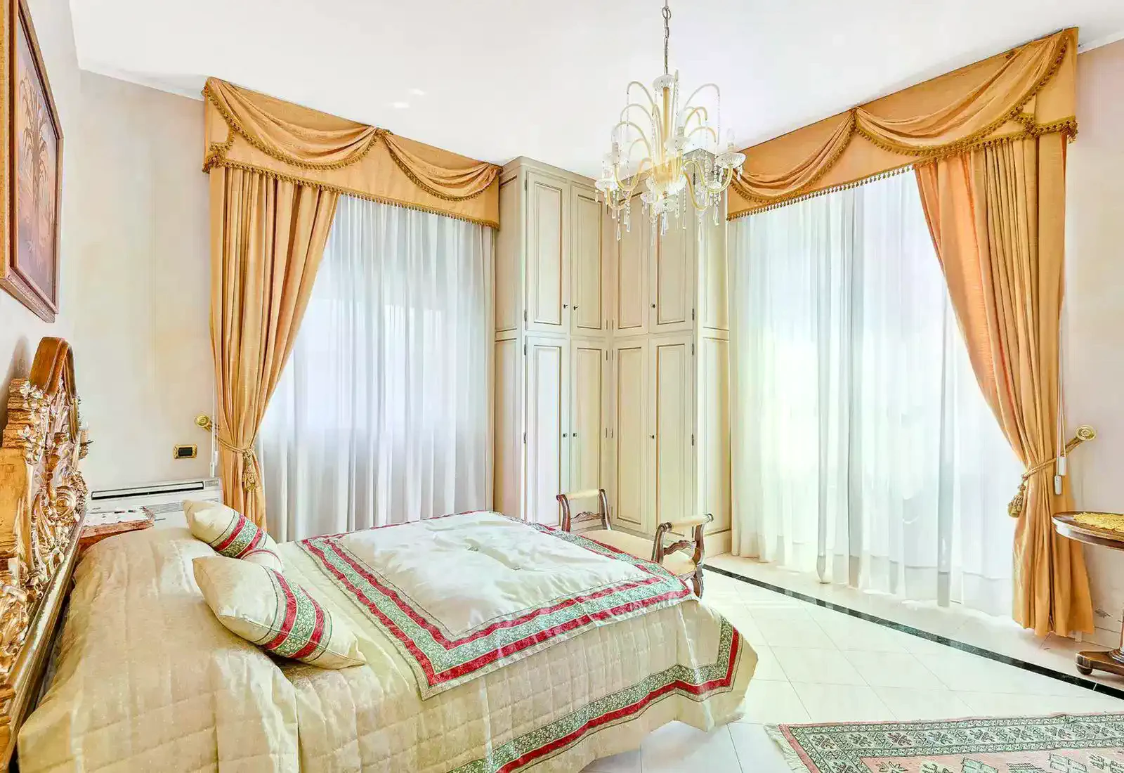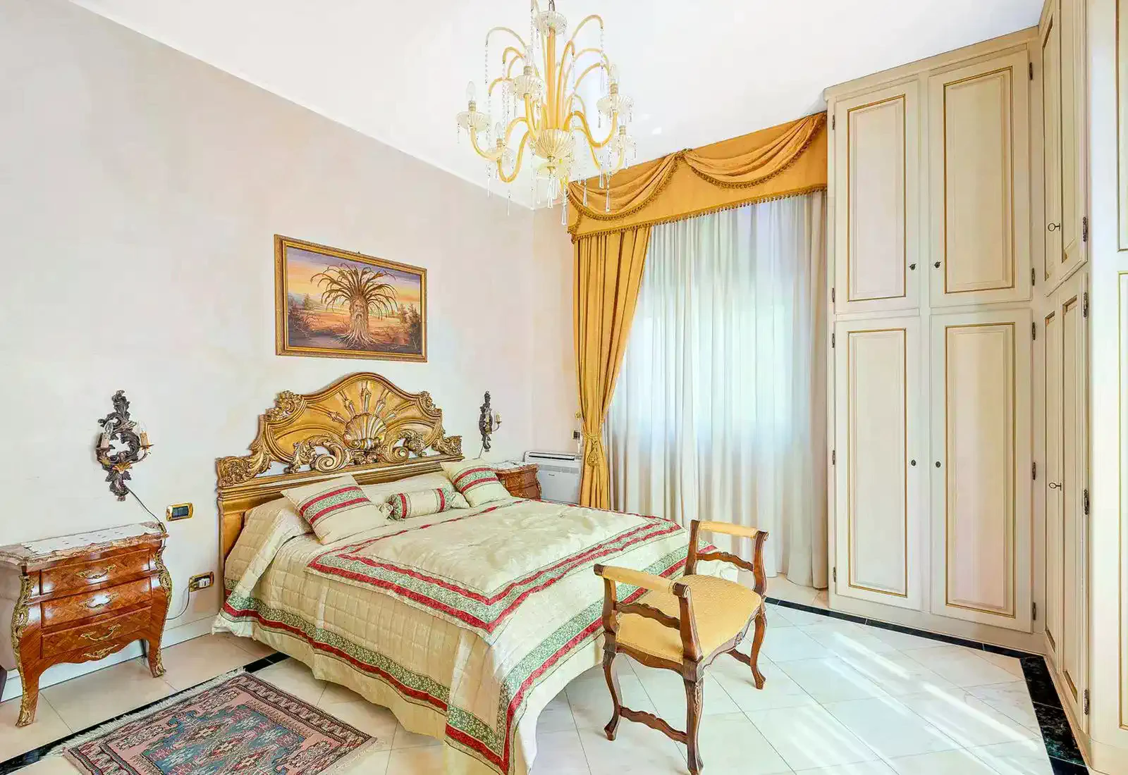 La zona notte comprende sei camere da letto e quattro bagni, rifiniti con marmi selezionati, boiserie su misura e dettagli artigianali che riflettono il patrimonio materiale della regione.