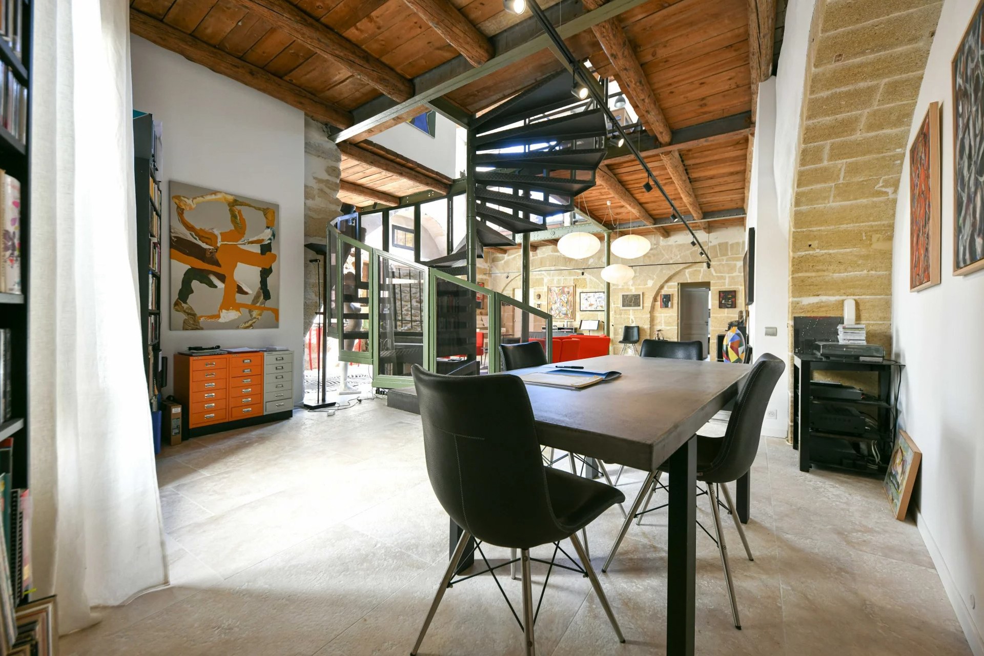 Il piano superiore comprende una cucina a vista con affaccio sulla zona giorno e una camera da letto con cabina armadio. Una terrazza privata dà accesso a una terza camera indipendente.