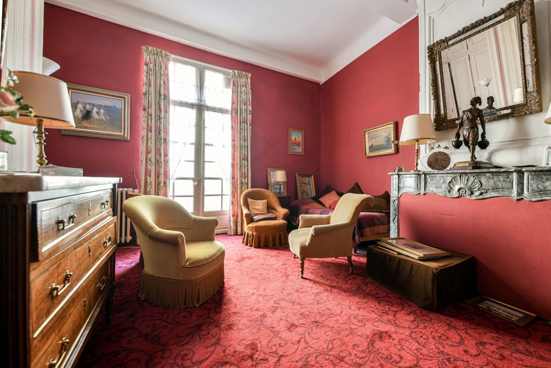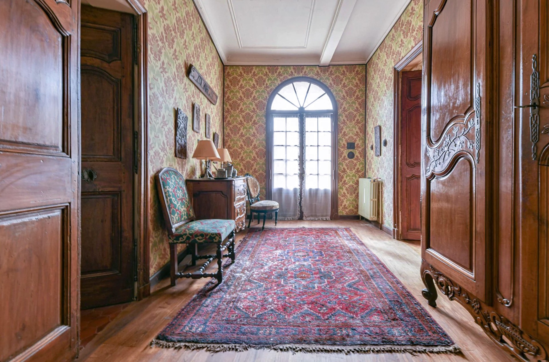 Al piano terra si trova un ingresso di 45 m² con scala a chiocciola. Da qui si accede a uno studio di 30 m² con vista sul giardino e volte a crociera d’epoca.